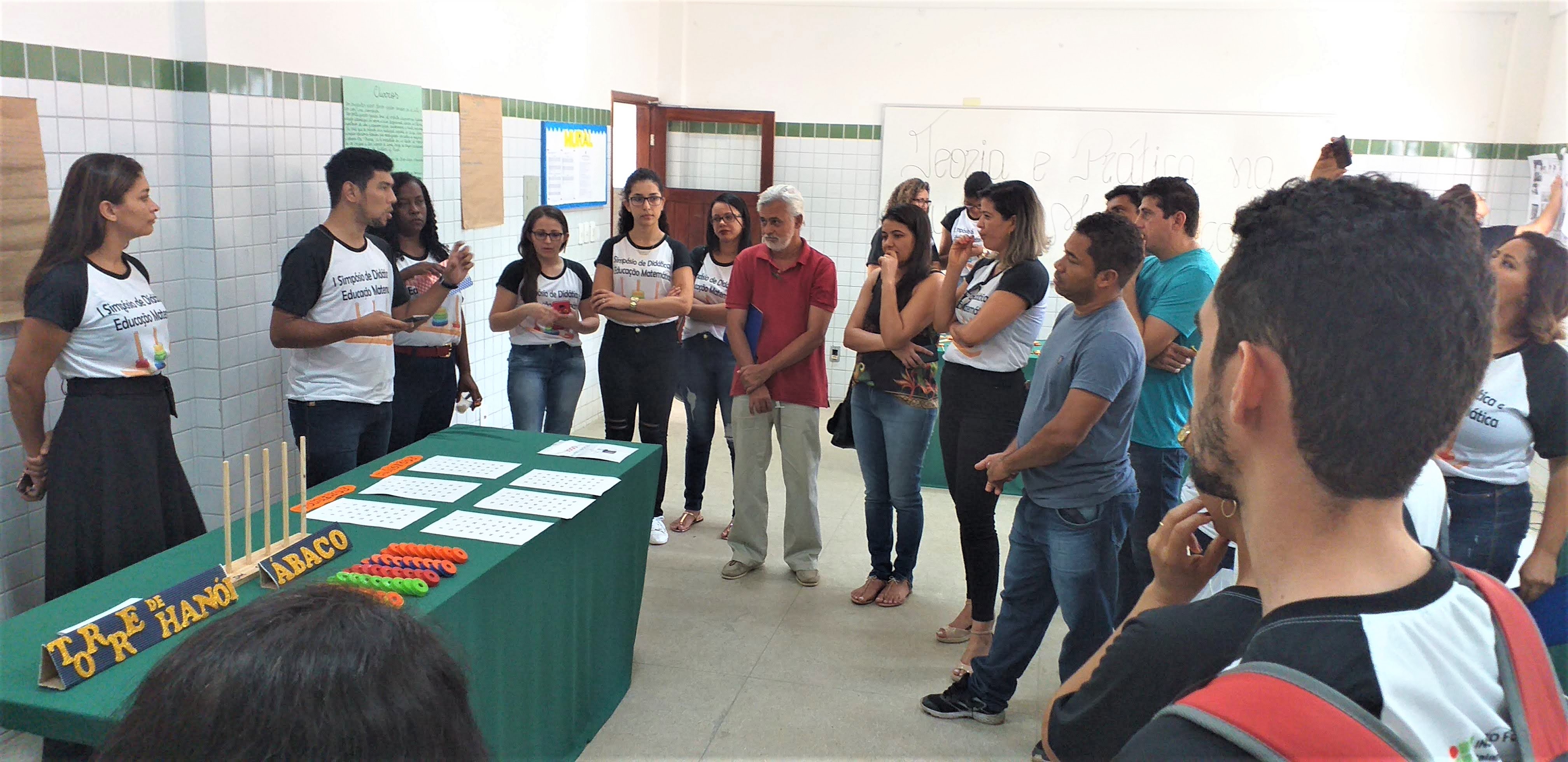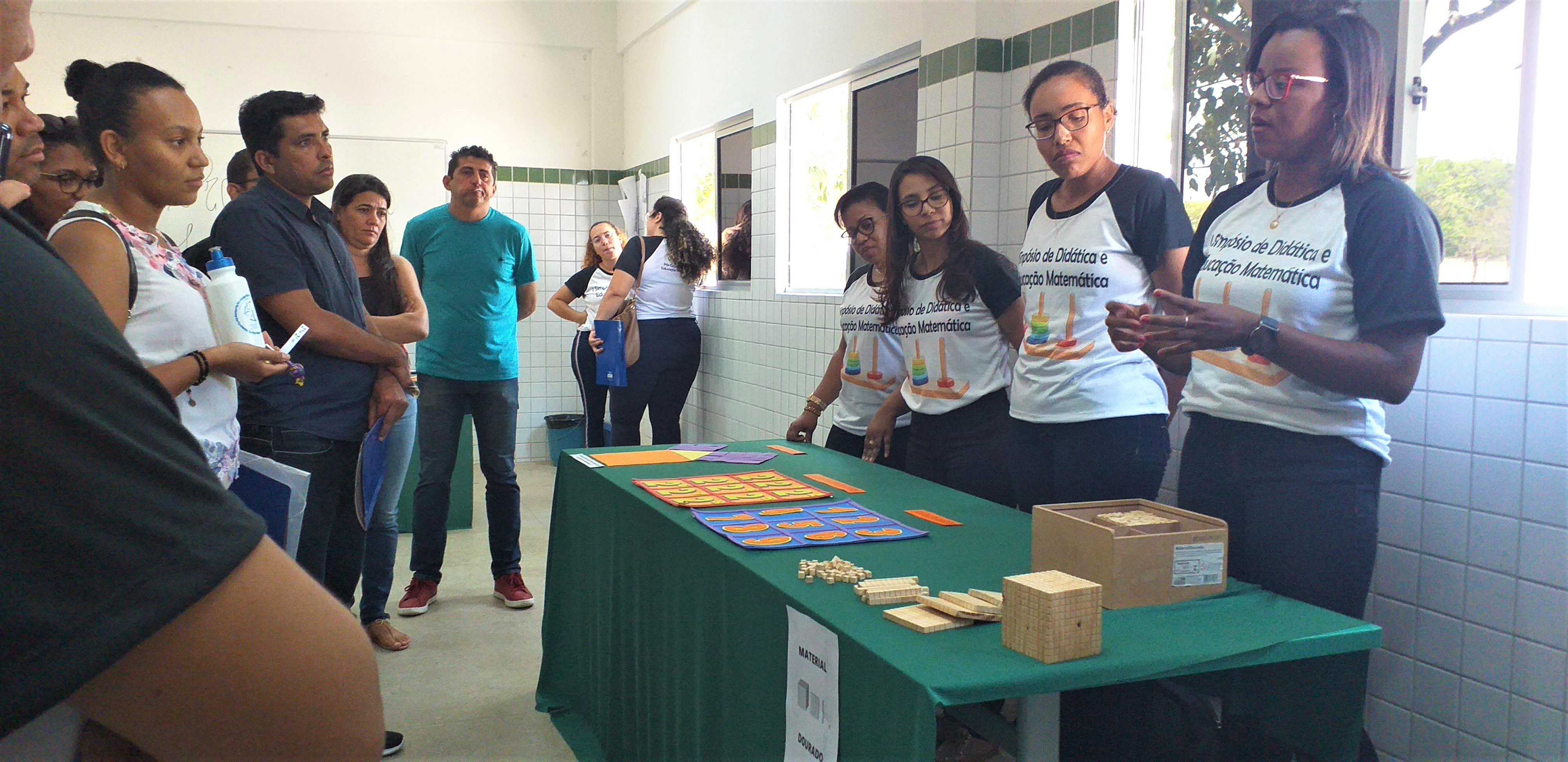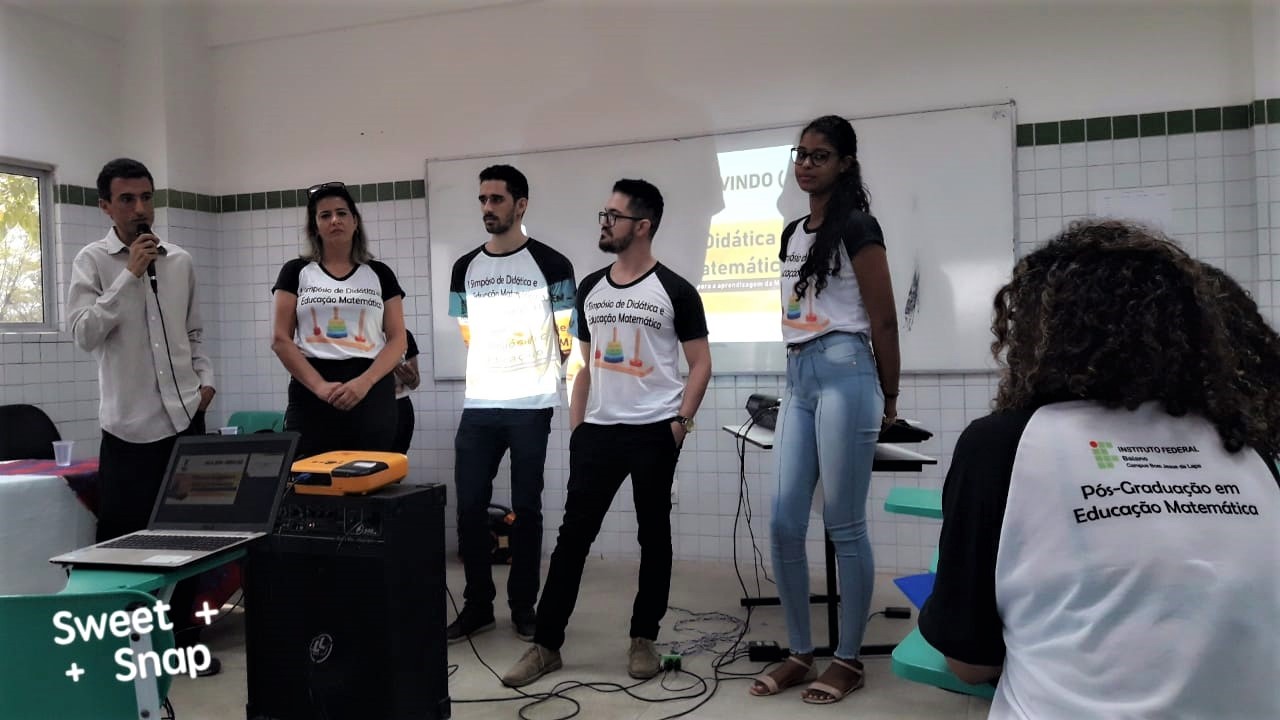 Aconteceu no último dia 21 de setembro de 2019 no IF Baiano Campus Bom Jesus da Lapa o “I Simpósio de Didática e Educação Matemática: concepções teóricas e práticas para aprendizagem da Matemática”, culminando o fechamento das atividades do I semestre da 2ª turma da Pós-Graduação em Educação Matemática. O evento foi organizado por docente e estudantes e contou com a participação de profissionais da rede municipal de ensino de Carinhanha, Bom Jesus da Lapa e Serra do Ramalho. Na oportunidade as debatedoras Edimárcia Soares da Silva, Gabriela Silva, Veraluce Nunes da Silva, Joelma Sipauba Freitas, Heloísa Neves de Souza e Rozane Meira de Sá Teles Magalhães discutiram sobre a Teoria dos campos conceituais de Vergnaud”; Registro de representações; Obstáculos epistemológicos; Teorias das situações didáticas; Contrato didático; e Transposição didática, respectivamente. Na oportunidade, o Diretor Geral do Campus, Geangêlo de Matos Rosa, destacou a relevância do Simpósio para a formação continuada de professores, posto que a aprendizagem matemática ainda é um desafio para estudantes e docentes. Para ele, pensar numa matemática para todos requer romper com uma tradição perversa de supervalorização de aspectos de um saber abstrato e distanciado das realidades. Durante o simpósio, os participantes também visitaram um stand de jogos matemáticos construídos pelos discentes a partir de materiais recicláveis, abordando conteúdos matemáticos da educação básica. Para a estudante Edimárcia, o evento simbolizou a superação de dificuldades e os encorajou a enfrentar novos desafios, fortalecendo a convicção de que é possível aprender matemática de forma significativa.