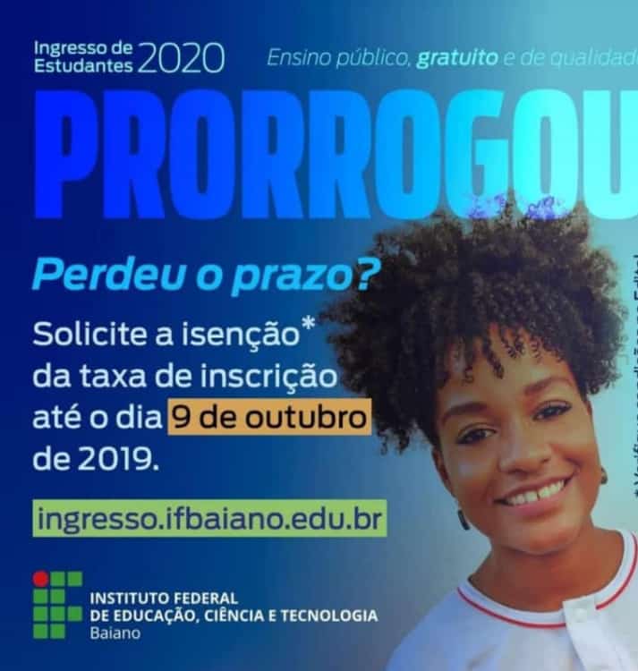 Prazo de isenção para Ingresso de Estudantes 2020 foi prorrogado até dia 09 de outubro de 2019.