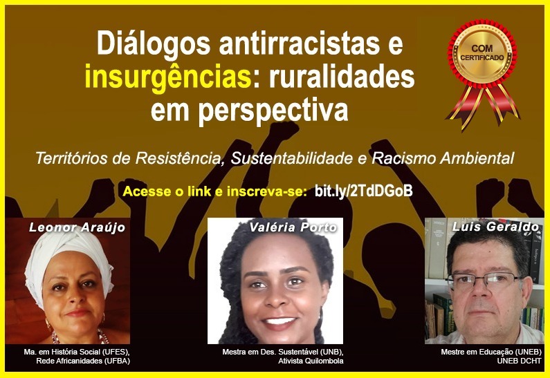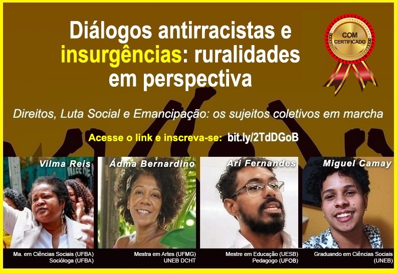 Quebrar paradigmas sobre as questões que, ainda hoje, afligem a sociedade, é necessário. Por essa razão, é preciso criar, coordenar, divulgar e participar de eventos que possam chamar a população a uma reflexão pautada nas dimensões inclusiva e urgentes. Assim, estes “Diálogos” têm como finalidade convidar a população a somar, em busca de novas perspectivas contra o racismo, além de pensar as ruralidades e suas especificidades. O mundo tem lutado arduamente contra o racismo: ele tem tomado proporções de visibilidade tal que não há mais como o Estado negar a sua existência e sequelas históricas.