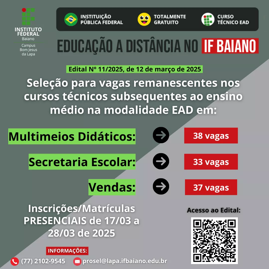 Reitoria: Rua do Rouxinol, nº 115, Imbuí, Salvador-BA. CEP: 41720-052. CNPJ: 10.724.903/0001-79 Telefone: (71) 3186-0001 | E-mail: gabinete@ifbaiano.edu.br