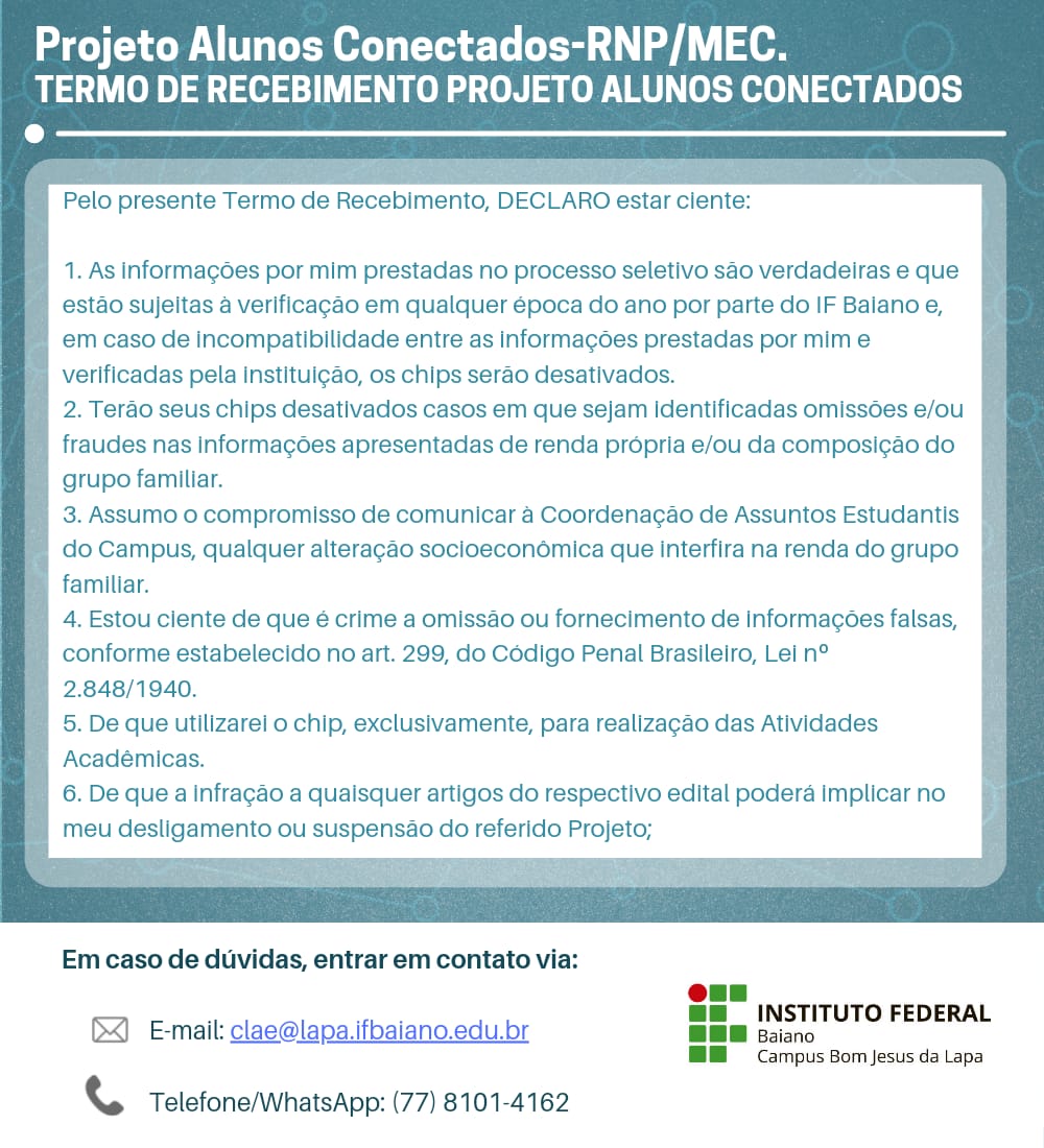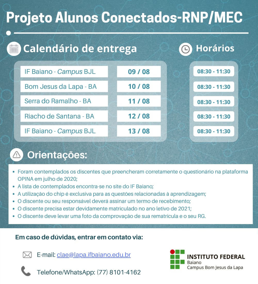 Projeto Alunos Conectados RNP/MEC é o fornecimento de rede móvel, via operadoras de Serviço Móvel Pessoal (SMP), com a disponibilização e monitoramento de pacote de dados para estudantes em condição de vulnerabilidade socioeconômica desenvolverem suas atividades acadêmicas.