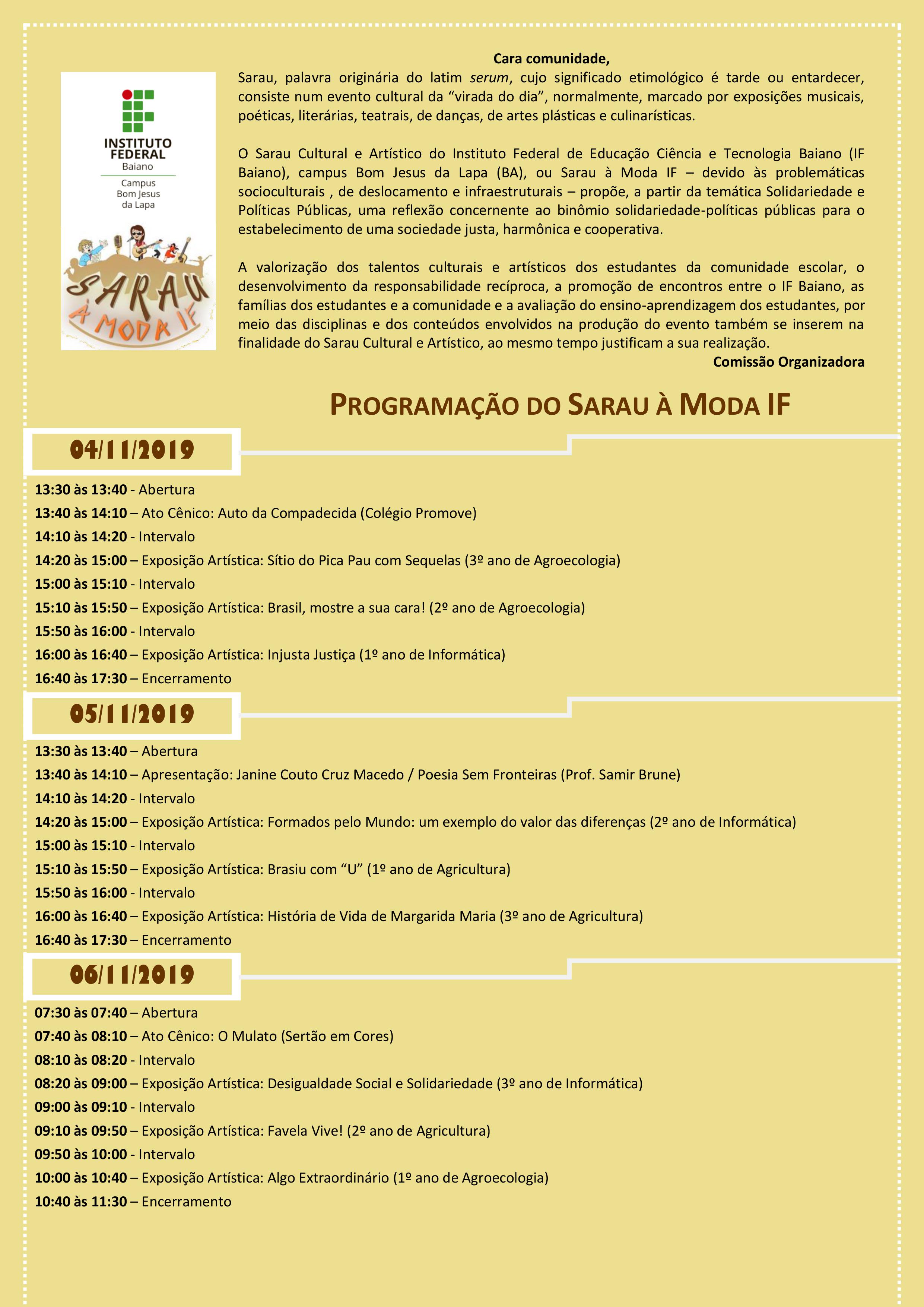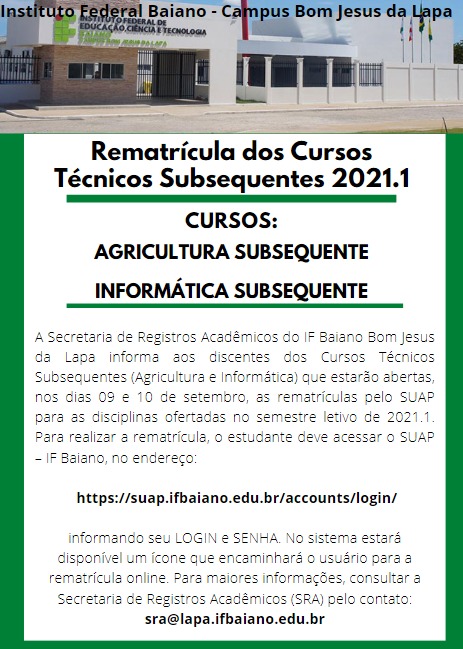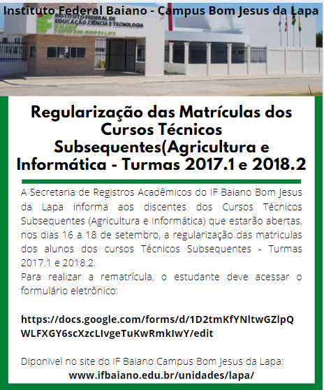 Desde o início do mês de abril de 2022, a equipe do Projeto de Extensão “Caracterização da bovinocultura leiteira no Município de Serrado Ramalho (BA)”, composta pelos servidores Kleverton Ribeiro e Heliselle Cristine e estudantes Anderson Novais, Rainne Dourado e Iara Novais, está desenvolvendo, nas agrovilas 01, 03, 04, 05, 06, 07, 08, 09 e […]