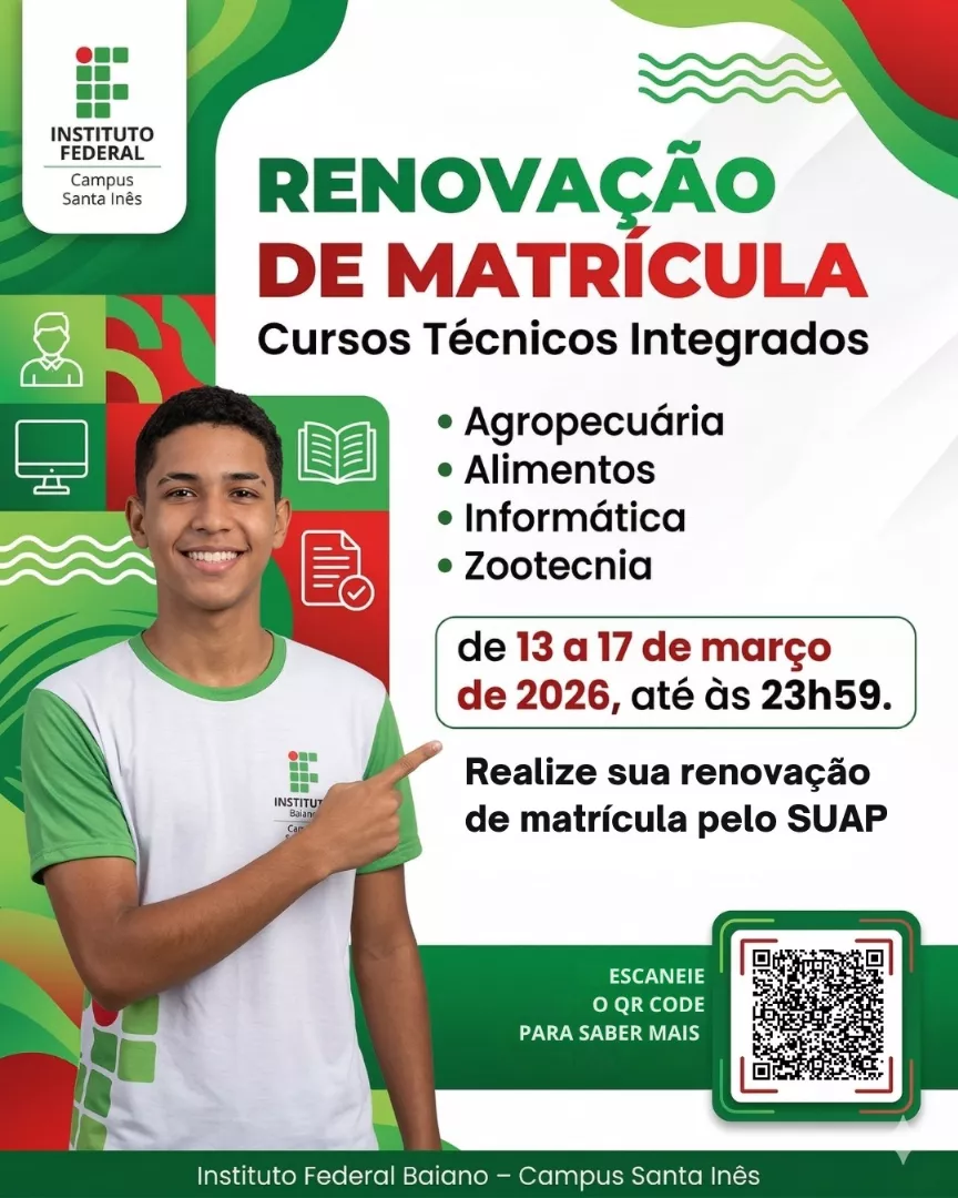 Reitoria: Rua do Rouxinol, nº 115, Imbuí, Salvador-BA. CEP: 41720-052. CNPJ: 10.724.903/0001-79 Telefone: (71) 3186-0001 | E-mail: gabinete@ifbaiano.edu.br
