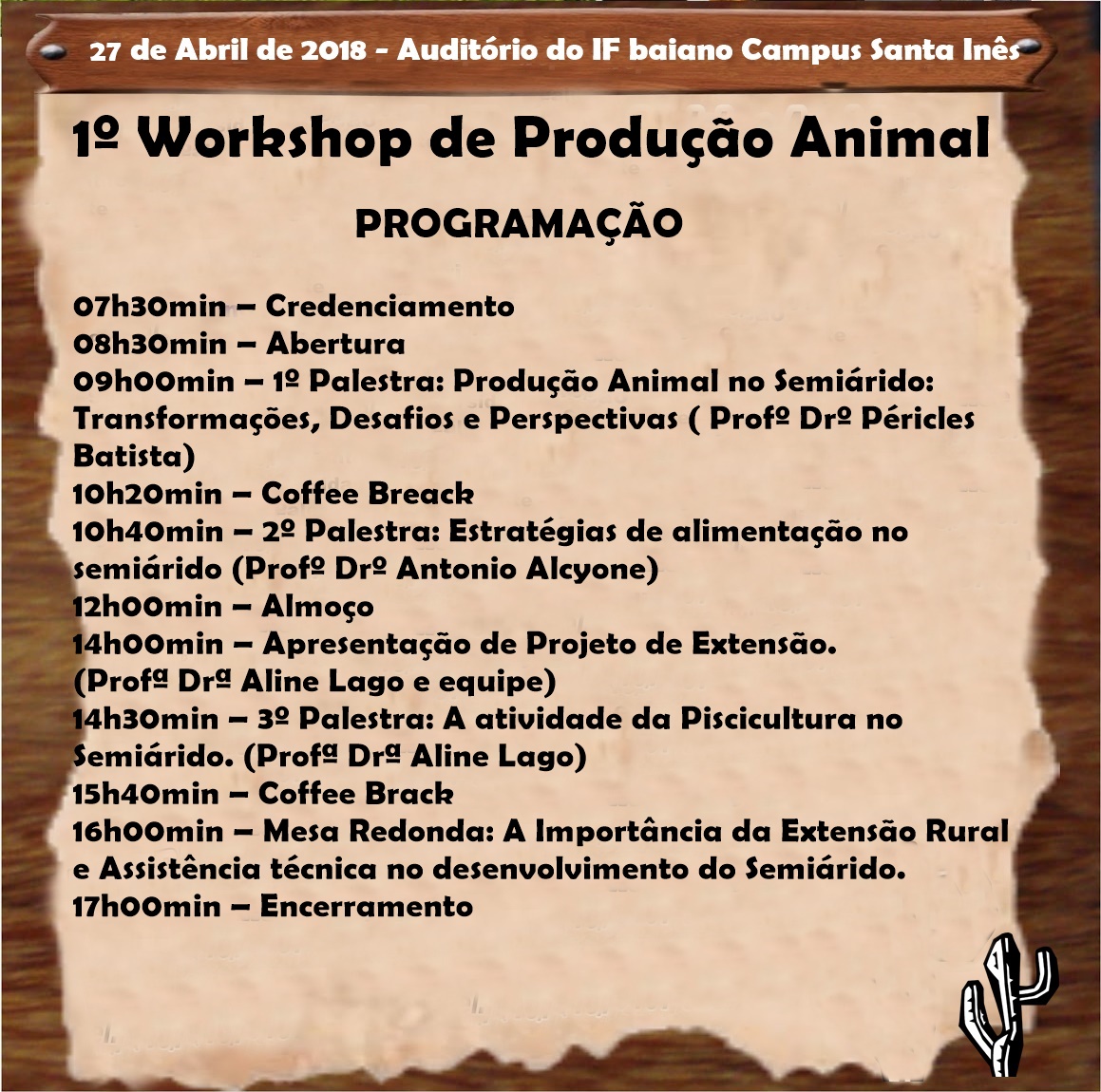 Diante disso o GEPA convida a toda comunidade interna e externa para participarem do 1º Workshop de Produção Animal que será realizado no dia 27 de abril de 2018, no Auditório da Biblioteca do IF Baiano Campus Santa Inês. Nesta primeira edição estaremos discutindo o tema: “A Produção Animal no semiárido”, através de Palestras e Mesa Redonda que ocorrerão durante todo o Evento.