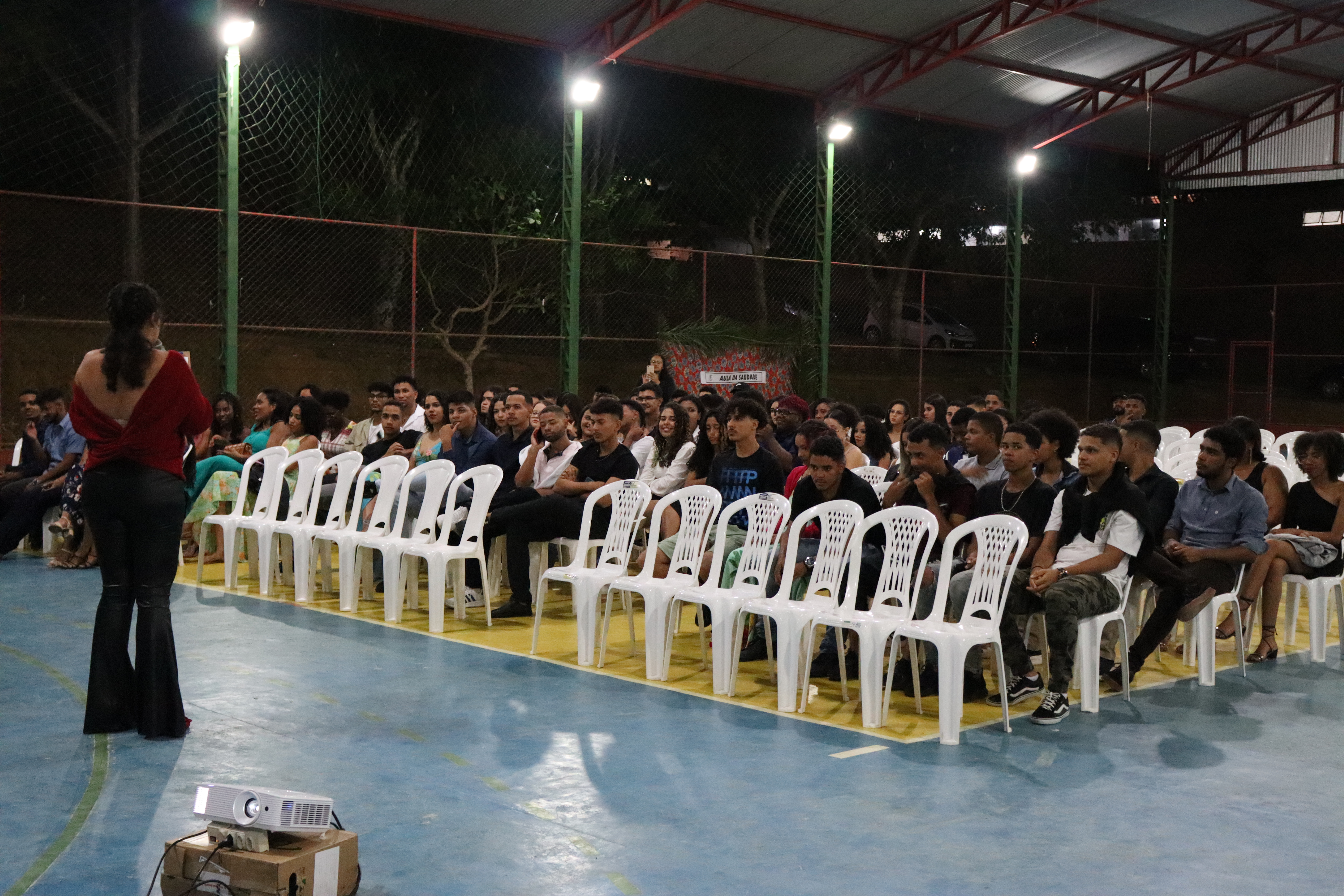 Na noite da última terça-feira (6), em celebração à conclusão dos Cursos Técnicos integrados em Agropecuária, Alimentos e Zootecnia, do IF Baiano – Campus Santa Inês, estudantes ingressantes em 2020, reuniram-se na quadra poliesportiva da instituição para realizar a “AULA DA SAUDADE”. O evento é um marco de transição para os estudantes, pois é o último momento de despedidas.