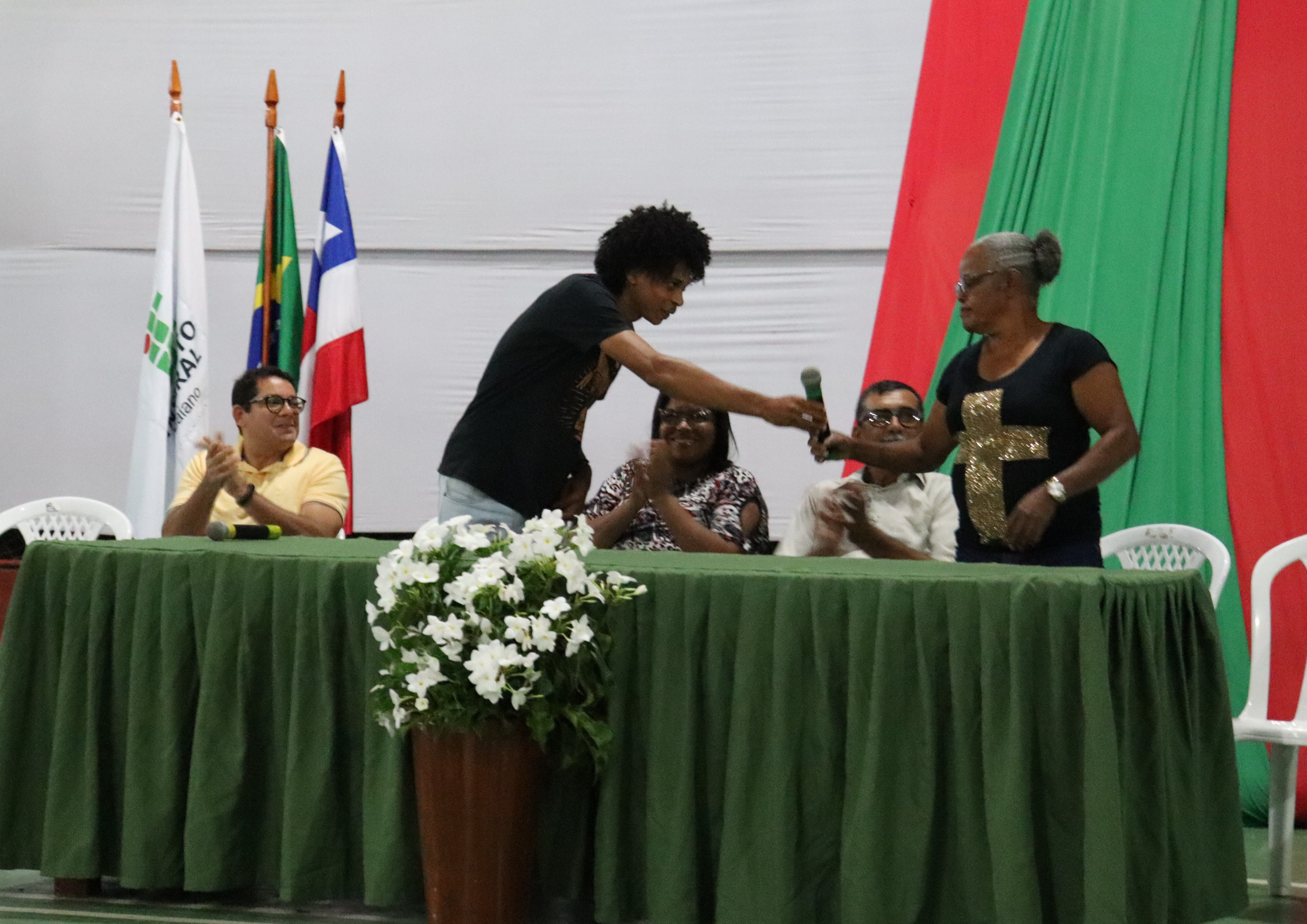 Após a mesa de abertura oficial, iniciou-se uma roda de conversa com os egressos do Curso Técnico em Agropecuária/PROEJA, Turma 2019, Maria da Paixão, Gizelia de Jesus, Miguel Neto e Ivanildo Muniz. Os atuais Técnicos em Agropecuária relataram suas experiências durante o processo de formação, a importância do curso para suas vidas, as dificuldades enfrentadas e superadas até a conclusão.