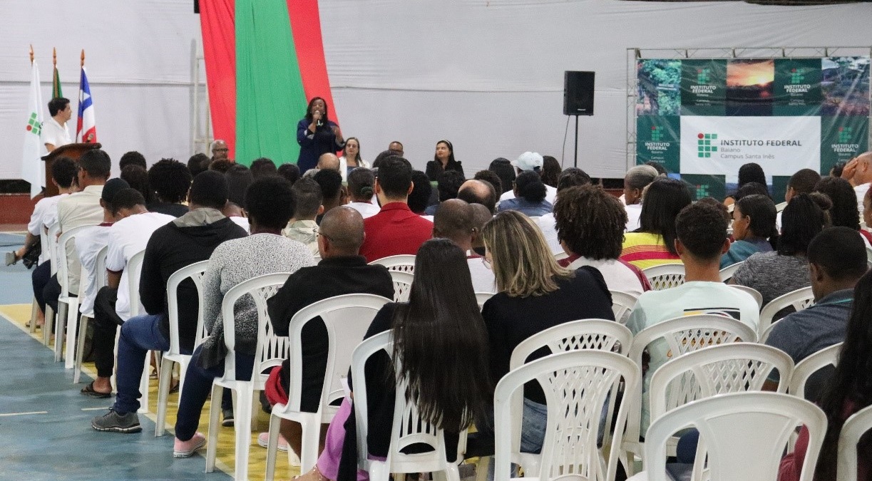 Na última terça-feira (30), aconteceu, no ginásio poliesportivo do IF Baiano – Campus Santa Inês, a aula inaugural do Projeto EJA /FIC Integrada a Educação Profissional e Tecnológica (EPT), dos cursos Agricultura Familiar, Padeiro e Produção de Doces e Conservas, em parceria com os municípios do Território do Vale do Jiquiriçá: Cravolândia, Jiquiriçá, Mutuípe, Santa Inês e Ubaíra.