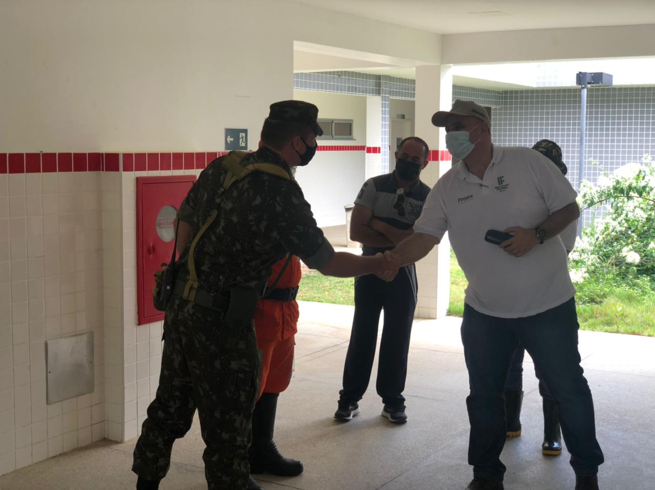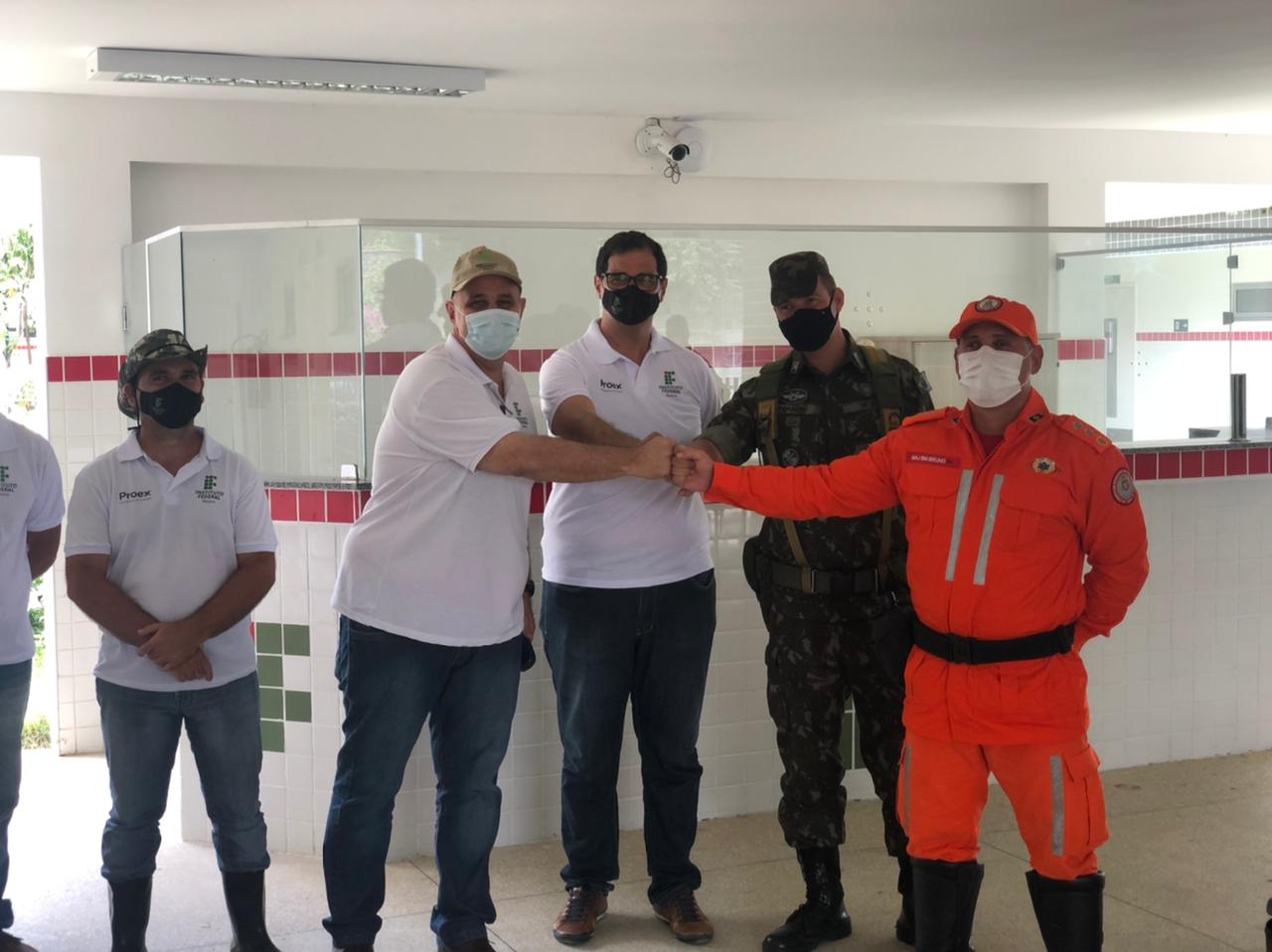 O campus Santa Inês do Instituto Federal Baiano está funcionando como base de apoio para o Corpo de Bombeiros e o Exército no auxílio às vítimas das chuvas no Sul e Sudoeste da Bahia. Cerca de 70 militares, entre exército e corpo de bombeiros, estão alojados no campus, que também recebeu ambulâncias, carro-pipa, caminhões e guinchos que vão atuar no auxílio aos desabrigados e desalojados. Ontem pela manhã, o Reitor do IF Baiano, professor Aécio José Araújo Passos Duarte, esteve no campus, onde conversou com os comandantes da operação reforçando o apoio institucional e acompanhou a entrega do primeiro caminhão com donativos arrecadados na Reitoria do Instituto, em Salvador.