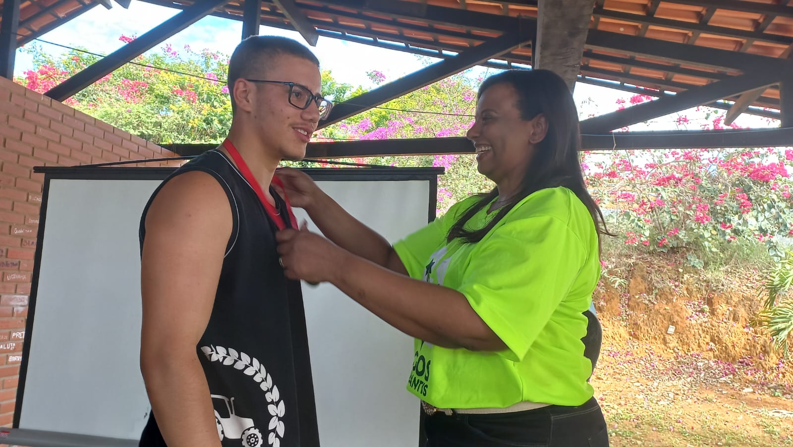 Posteriormente foi apresentado um vídeo com os melhores momentos da equipe Santa Inês nos JEIF 2022 e, após, foram entregues as medalhas com a logomarca do JEIF para todos os discentes atletas e para comissão técnica. Ao final das entregas, a comissão técnica da delegação, fizeram a entrega de medalha também a Genilda Lima e a Daniele Matos, tendo em vista todo empenho alocado da Direção Geral e Administrativa do Campus para participação da delegação nos jogos.