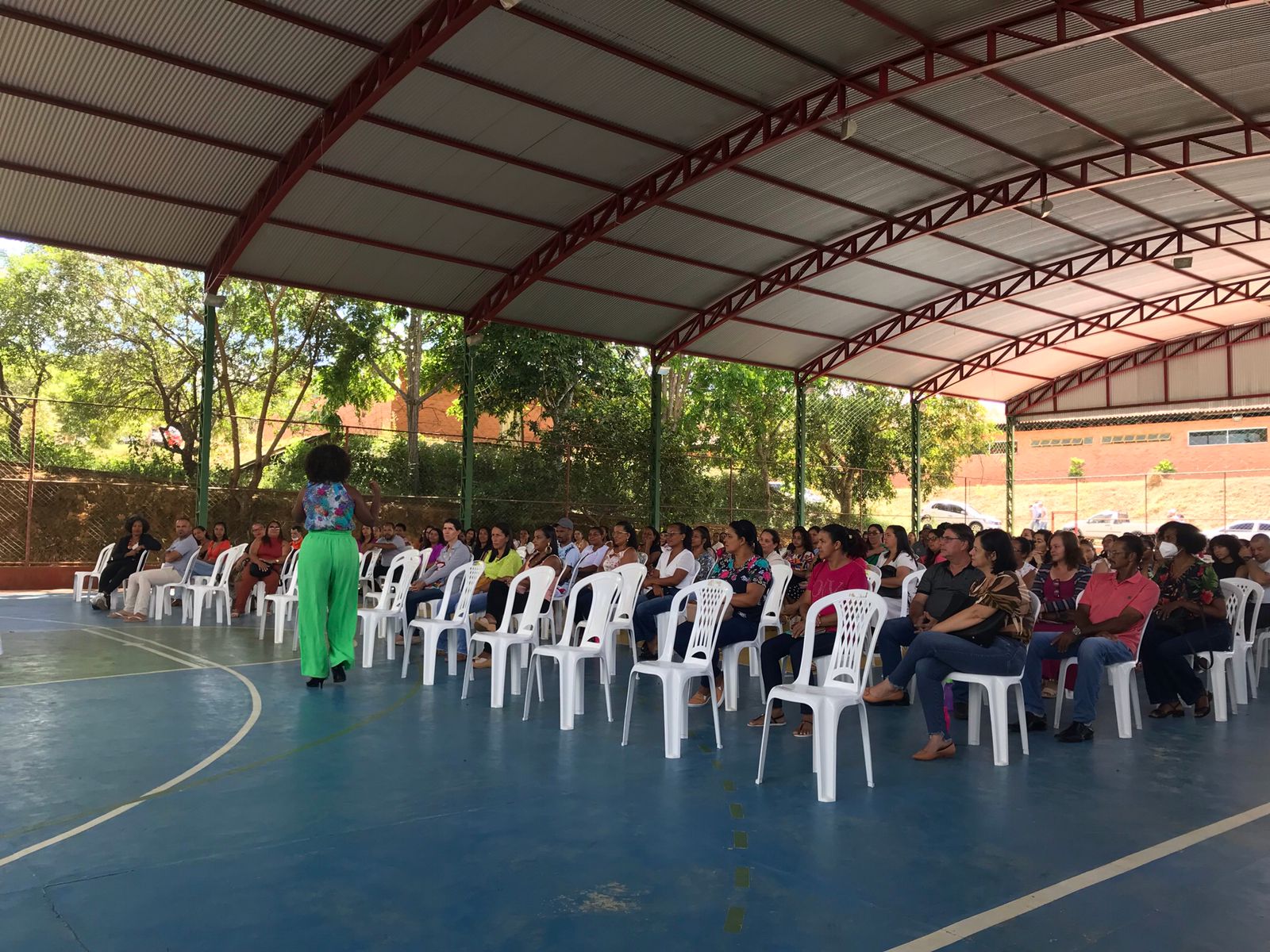 A Diretora Geral, professora Genilda Lima, fez uma acolhida aos presentes, falou sobre a satisfação e alegria em receber os novos estudantes, sobre a importância do apoio e parceria dos pais para um resultado de sucesso e também explicou sobre a estrutura e funcionamento da instituição.