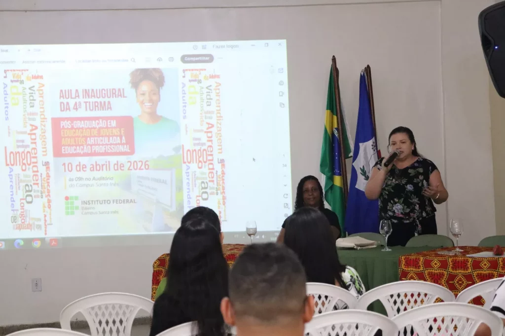 O Instituto Federal Baiano (IF Baiano) – Campus Santa Inês realizou na manhã da última sexta-feira, dia 10 de abril de 2026, às, no auditório da Biblioteca, a aula inaugural da 4ª turma da Pós-Graduação em Educação de Jovens e Adultos (EJA) articulada à Educação Profissional.