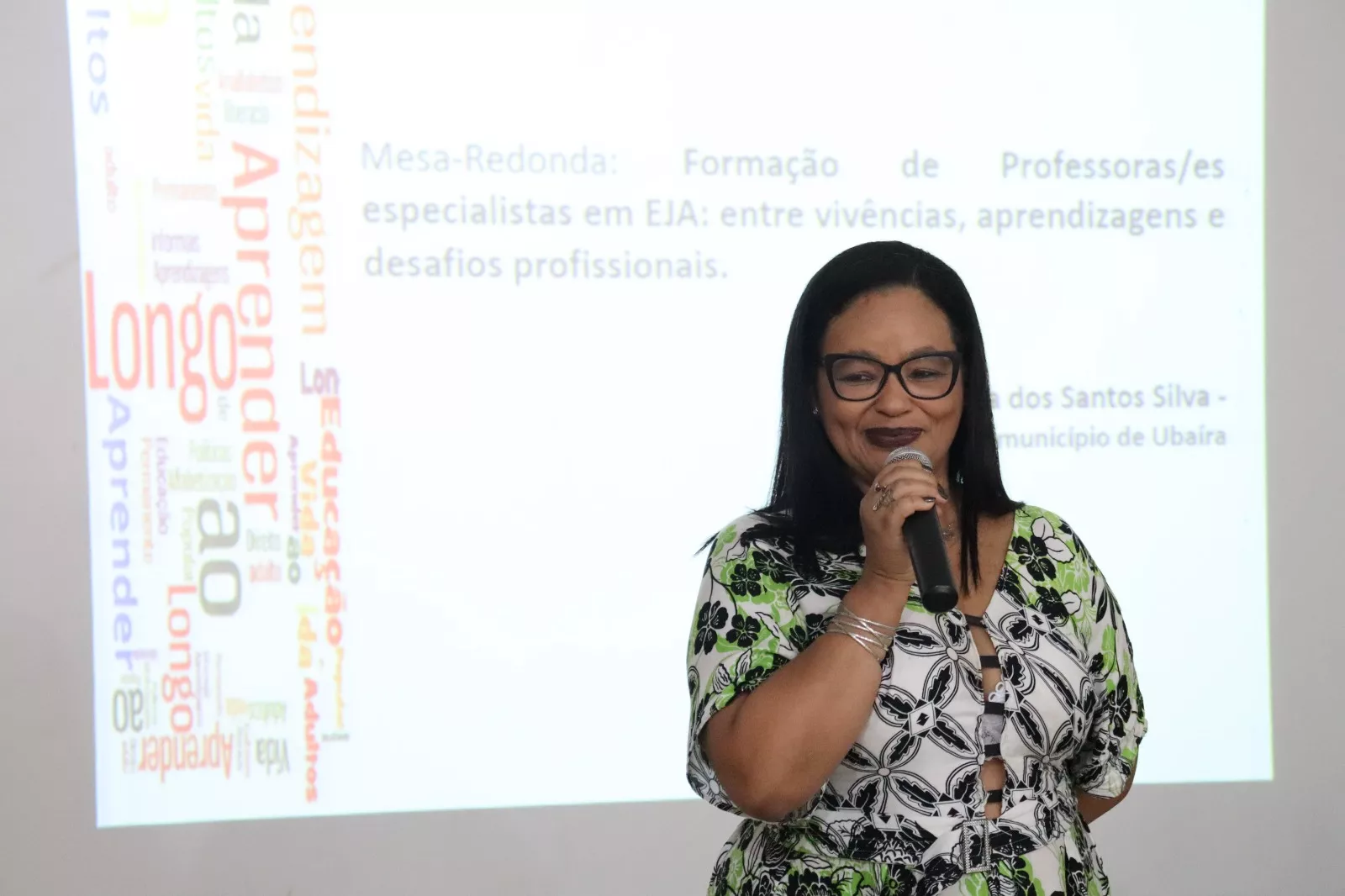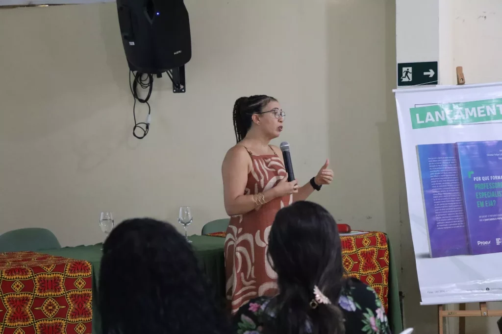 A programação incluiu, ainda, uma mesa-redonda com a participação de egressa da primeira turma do curso, Lúcia Silva, professora da Rede Municipal de Educação de Ubaíra que compartilhou experiências e reflexões sobre o tema “Formação de professoras(es) especialistas em EJA: entre vivências, aprendizagens e desafios profissionais”, contribuindo para o diálogo e fortalecimento da prática pedagógica na área.