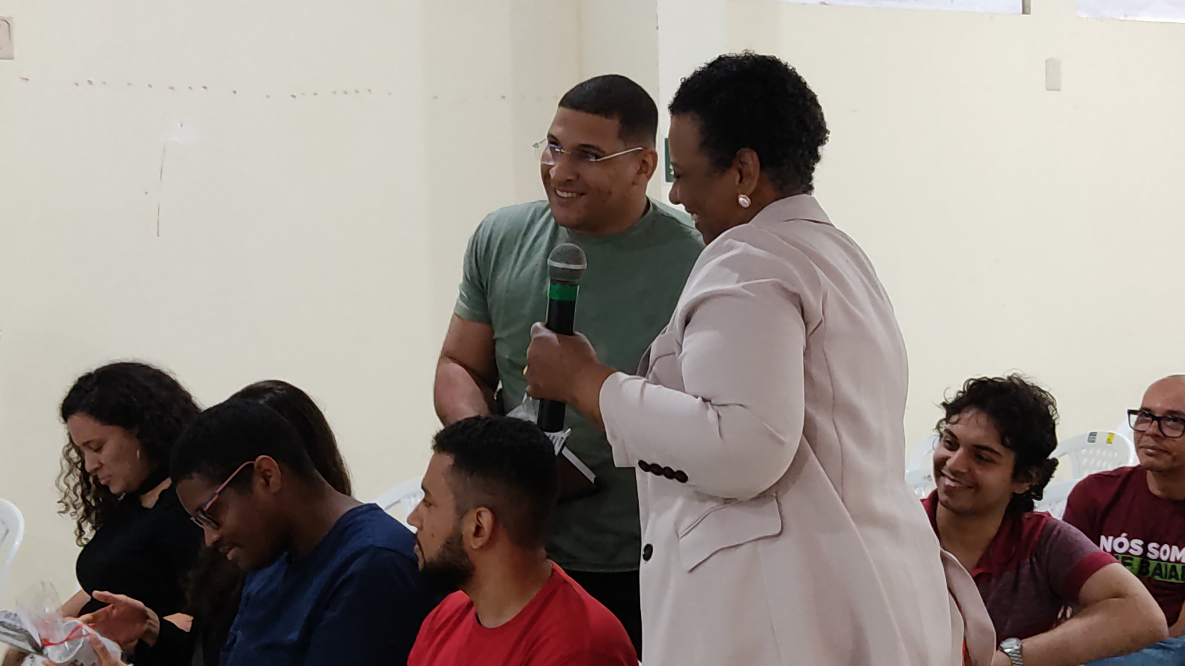 Ao se apresentar, a nova servidora, Marielle Barbosa, que tem bacharelado em Ciências Contábeis e assumiu o cargo Técnico em Contabilidade, falou que, apesar de sua atuação profissional anterior ter sido na área de educação (Auxiliar de Classe), o IF Baiano é sua primeira experiência de atuação em sua área de formação. Ela se diz muito feliz por essa nova experiência e agradecida pelo acolhimento recebido de todos. “O acolhimento que recebemos aqui foi de suma importância pra nossa chegada. Nós que estamos vindo de outro ambiente de trabalho, de outra cidade… eu, particularmente, já me sinto em casa porque fui muito bem recebida por todos e espero, também, contribuir de forma positiva para o desenvolvimento dessa instituição”. Os novos servidores, Iranildo Oliveira, João Elias, Danilo Santos, Tiago Souza, Lara Pugliesi e Pedro Davi Pereira, também tiveram momentos de fala e de apresentação.