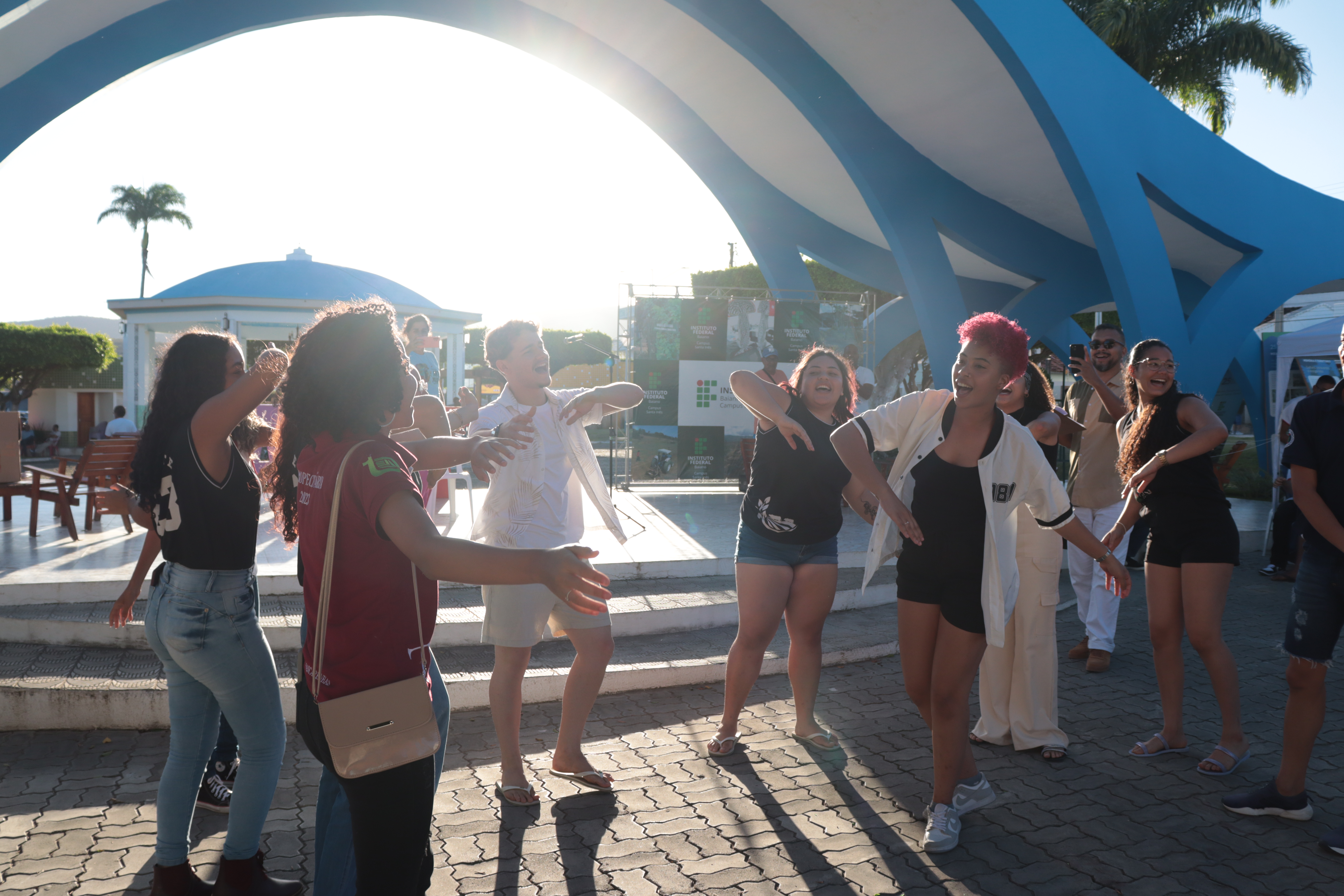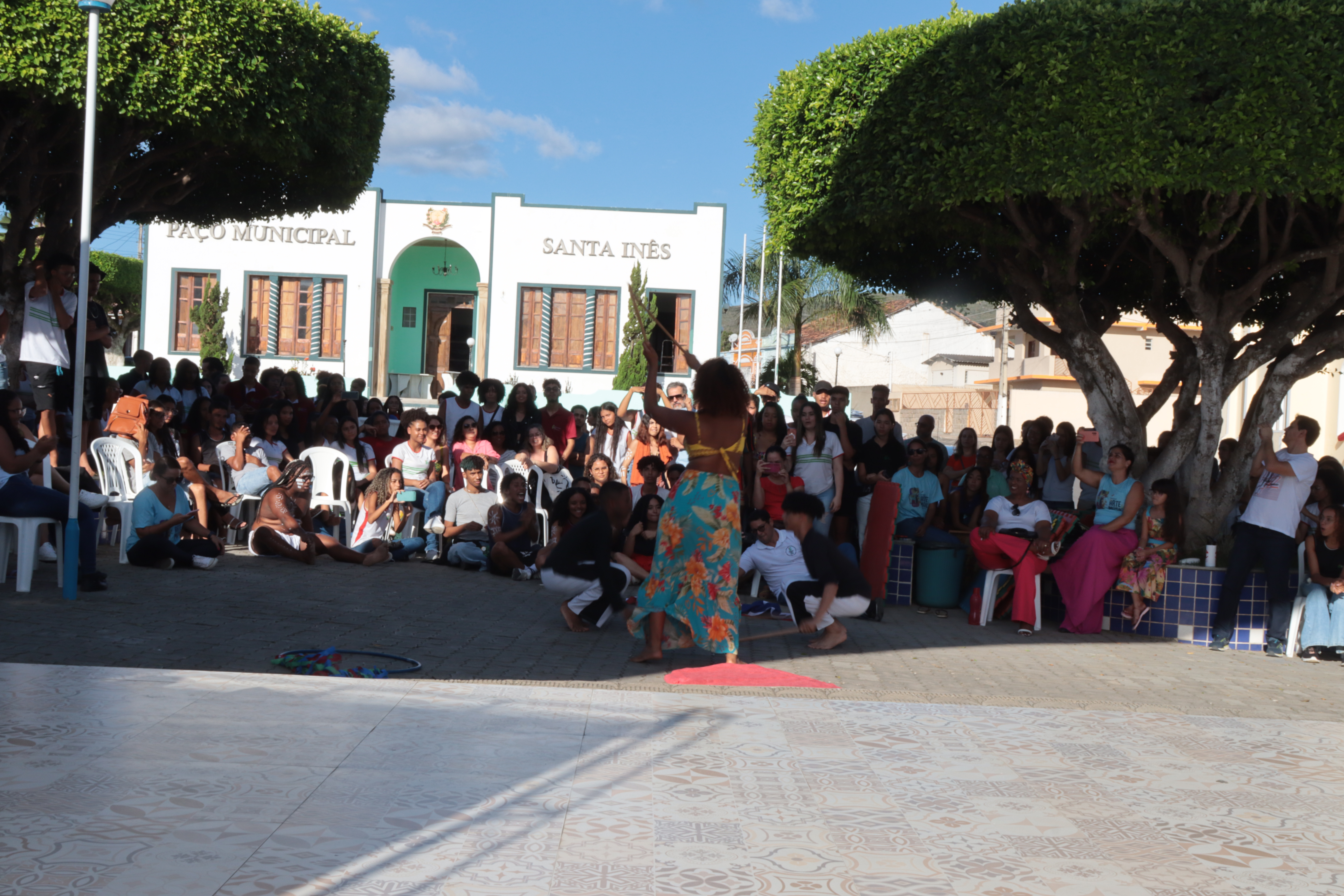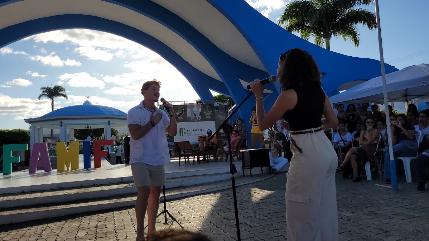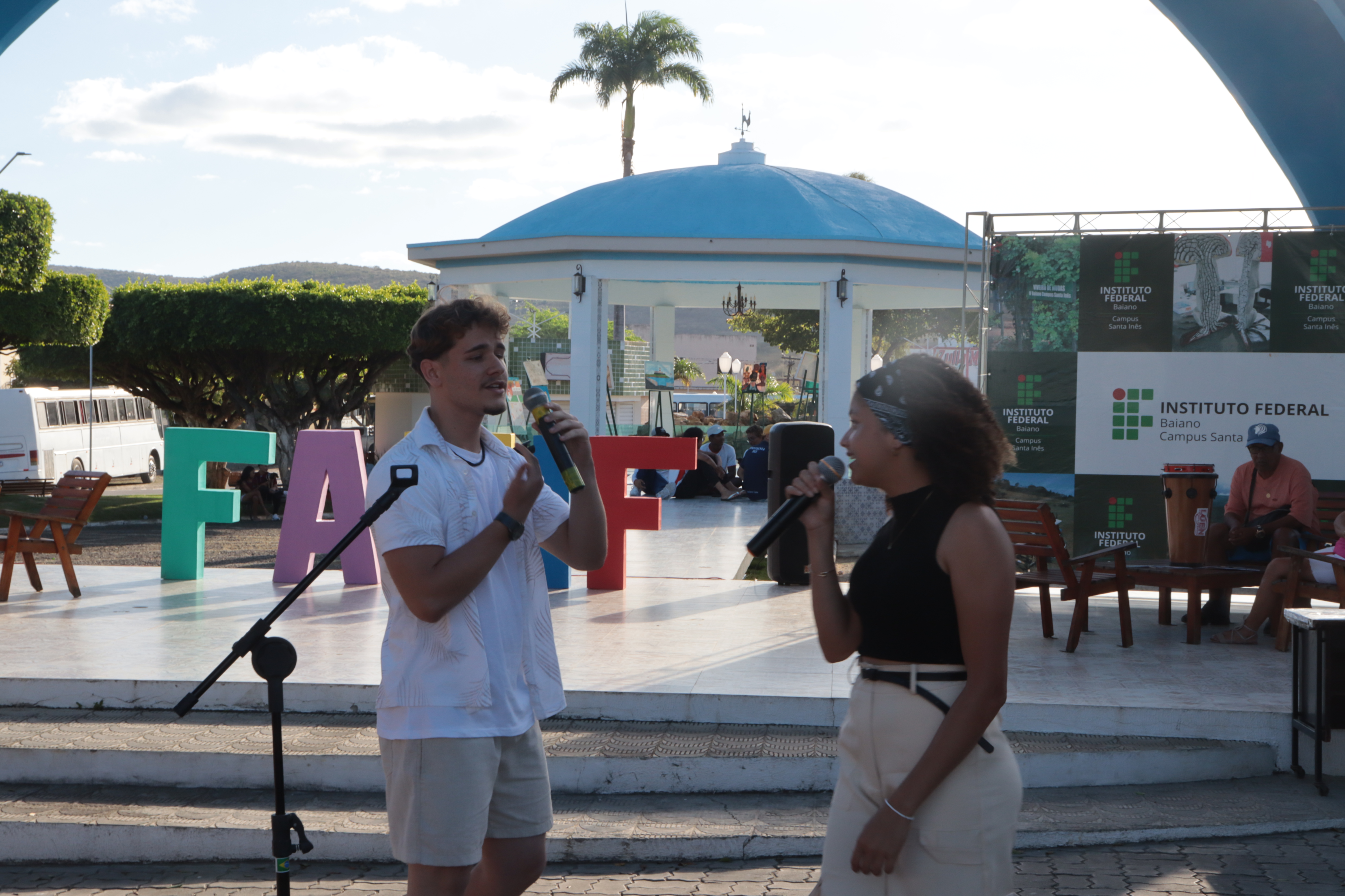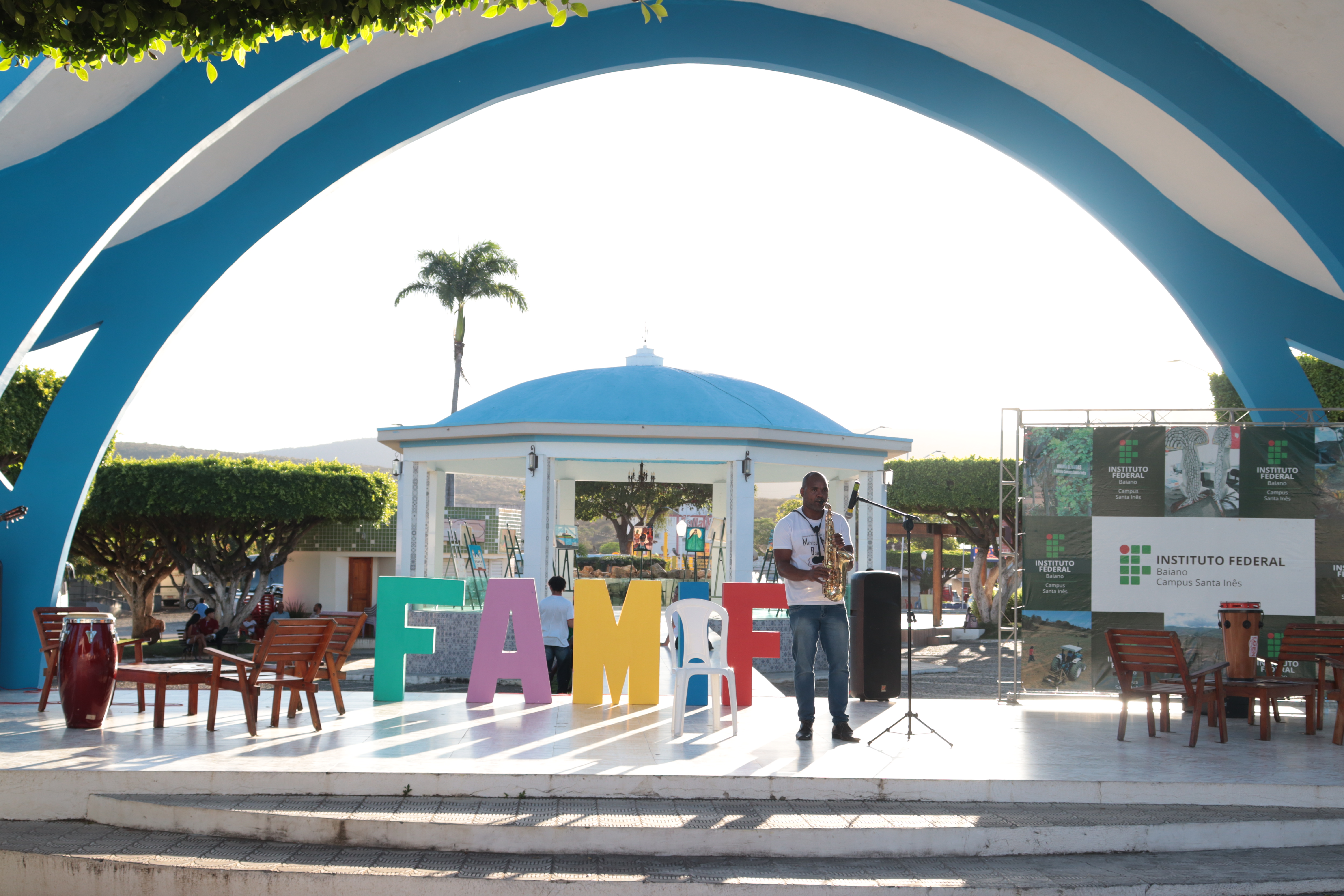 Ontem, 13, o Campus Santa Inês, em parceria com a Prefeitura Municipal por meio da Secretaria Municipal de Turismo e Cultura, realizou a etapa local do IV Festival de Arte e Música do IF Baiano – FAMIF 2023, mostrando a diversidade de atrações culturais e artísticas da Bahia, através de apresentações de estudantes do Campus. O evento também contou com a participação da comunidade externa, com performances de escolas municipais e de outros grupos artísticos da cidade, como o Reunindo Primaveras.  Este ano a Praça Central do município de Santa Inês foi o palco da etapa local do FAMIF 2023.