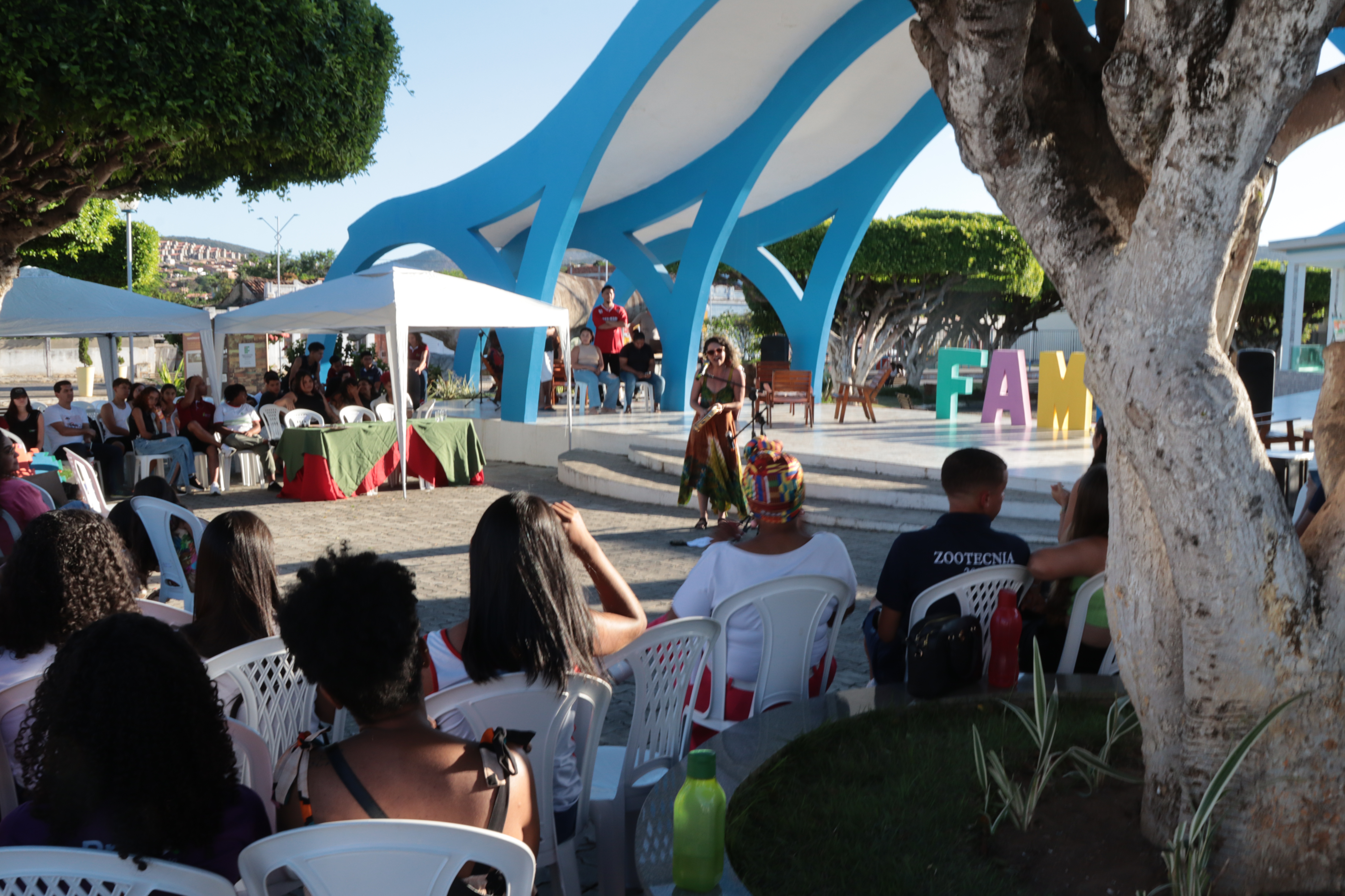 O evento teve início às 8h e foi apresentado pelo Professor de Arte do Campus, Amós Oliveira, ao som das palavras de acolhimento e celebração da cultura baiana, como recitado no poema “Bahia que encanta”, de Tânia Baltazar. A professora Genilda Lima, Diretora-Geral do Campus, fez a abertura oficial do evento, deu as boas-vindas aos participantes, falou sobre o evento e sua importância. “O IF Baiano compreende que é através da arte, da cultura, da música que a gente vai conseguir se expressar, que a gente consegue alinhar as nossas ações para ter uma formação completa”, disse a diretora.