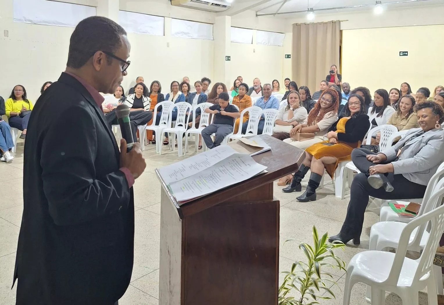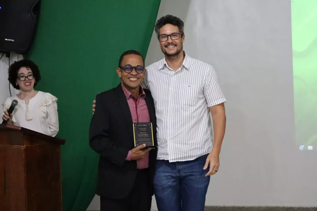 A emoção tomou conta do auditório com a leitura de uma carta pelos alunos da XI Mostra Parasitológica, na voz da estudante Leylane Santos Leal. O texto, carregado de gratidão, ressaltou a importância do professor Fred Julião na formação dos estudantes. “A disciplina de Parasitologia, sob sua condução, transformou-se em uma experiência única e inesquecível. Em especial, o projeto ‘XI Mostra Parasitológica’ foi a grande estrela dessa jornada. Brilhamos imensamente por todo o vale do Jiquiriçá em uma ação de educação e saúde incrível”, leu Leylane.