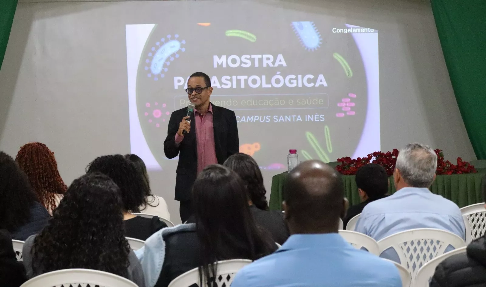 A importância da Mostra Parasitológica foi evidenciada pela presença de diversos servidores convidados, cujas funções foram e são cruciais para a viabilização do projeto. Entre eles, a Diretora-geral (DG), a Diretora de Administração e Planejamento (DAP), Coordenação de Ensino (CE), Coordenadores de Curso e de Extensão, representantes do Setor Pedagógico, da Coordenação de Assuntos Estudantis (CAE), do Setor de Transporte, da Biblioteca, da Assessoria de Comunicação – ASCOM e da Coordenação de Suprimentos e Logística (CSL).