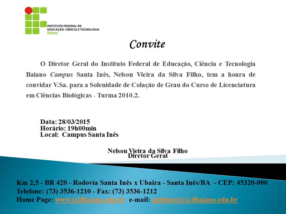 Reitoria: Rua do Rouxinol, nº 115, Imbuí, Salvador-BA. CEP: 41720-052. CNPJ: 10.724.903/0001-79 Telefone: (71) 3186-0001 | E-mail: gabinete@ifbaiano.edu.br