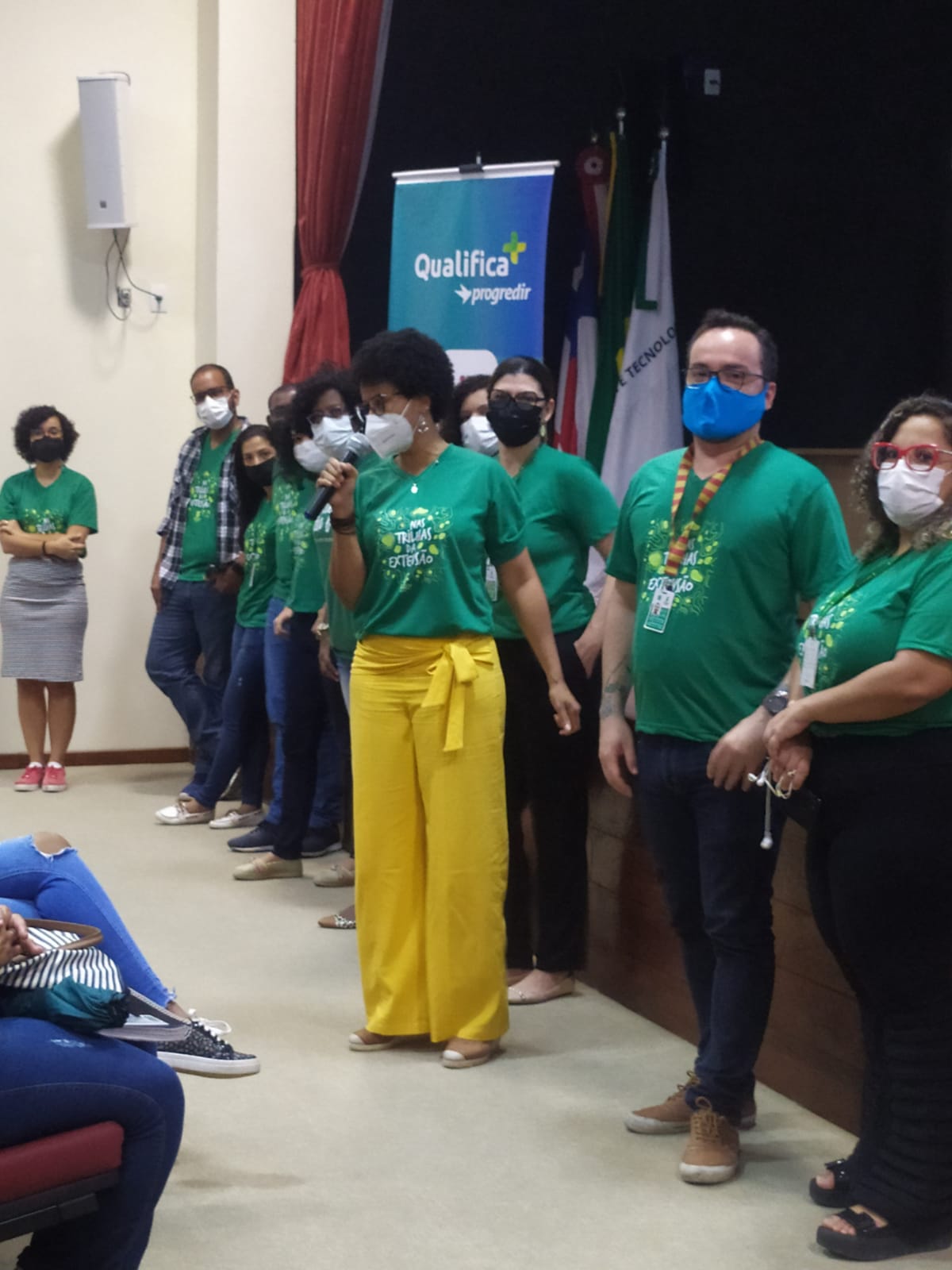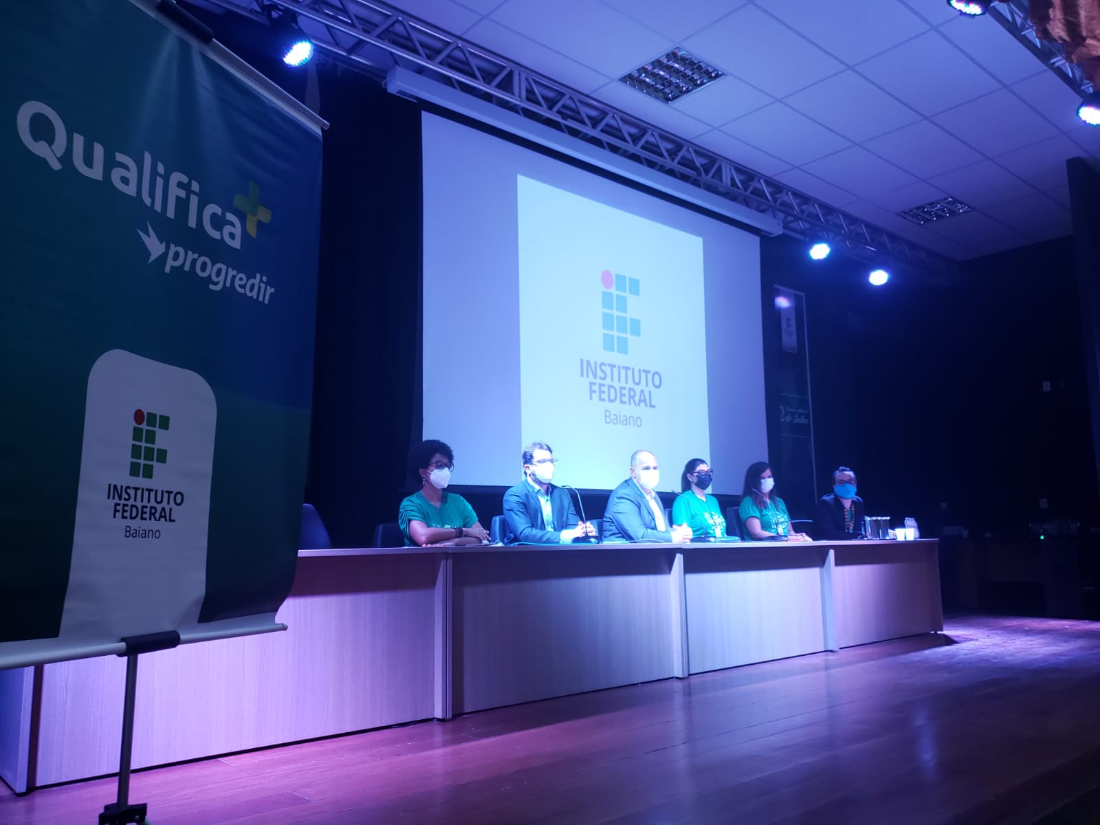 A cerimônia contou com a participação do reitor, Aécio José Duarte; do pró-reitor de Extensão, Rafael Trocoli; da coordenadora geral do Programa Qualifica Mais Progredir, Uilma Reis; do coordenador adjunto do curso em Camaçari, Luís Henrique Gomes; da coordenadora adjunta do curso em Salvador, Ana Paula Marques; e da representante da equipe de professores formadores, Larissa Fernanda Peixoto. Além, da participação da equipe de apoio, da supervisora do curso em Salvador e professores formadores que atuarão no curso.