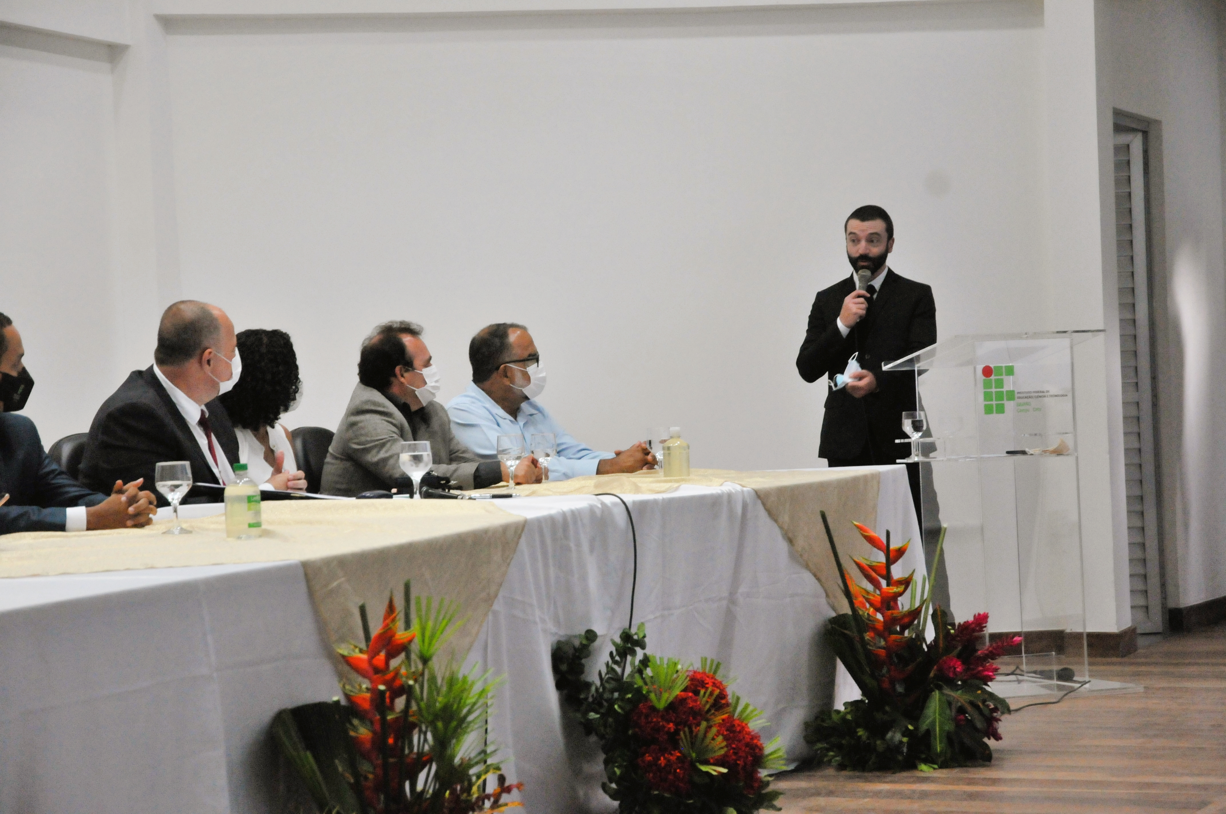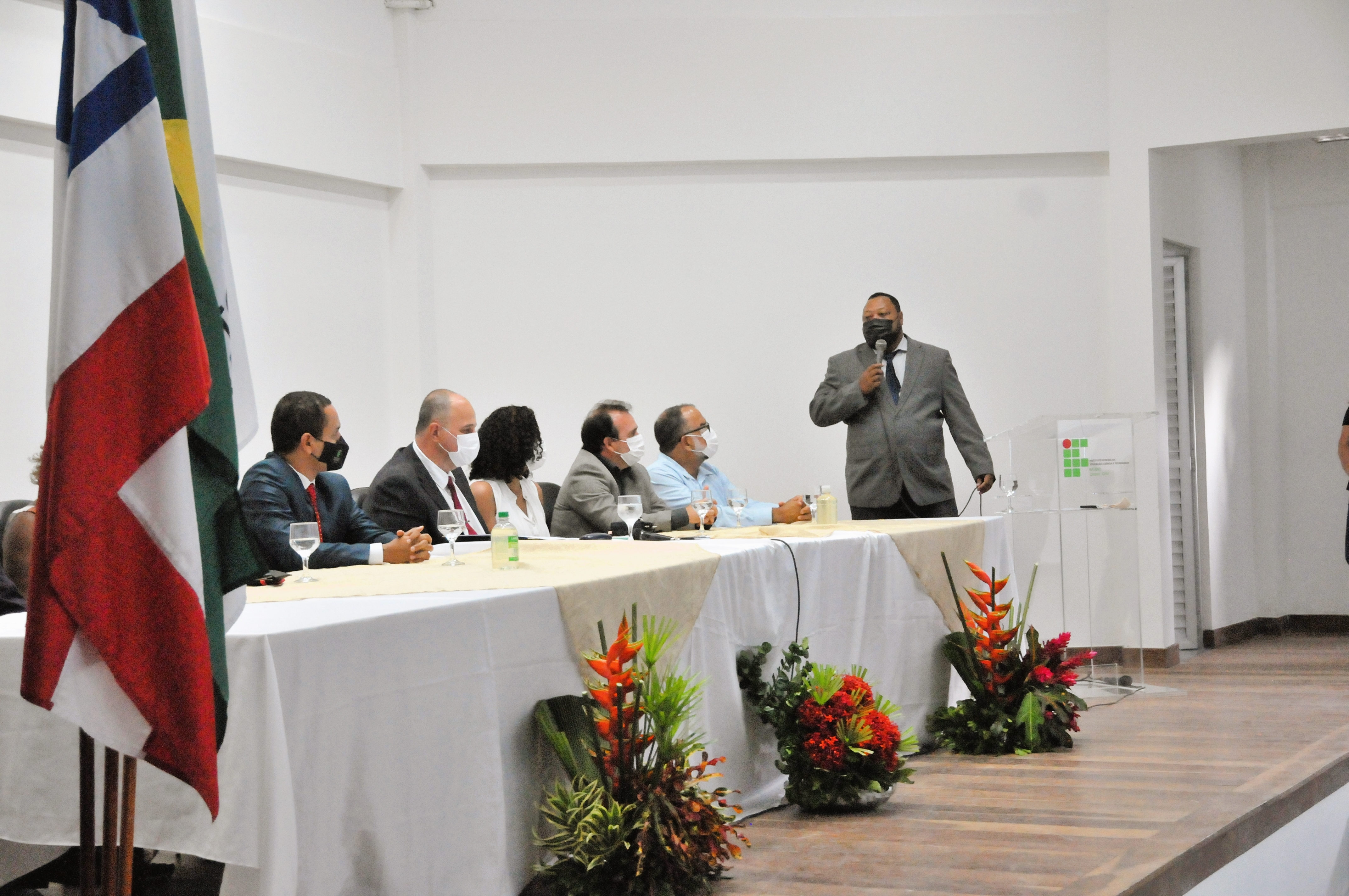 Os sentimentos de reencontro e união deram o tom da cerimônia, que foi o primeiro evento intercampi realizado de forma presencial após o decreto de pandemia, em março de 2020. Em sua fala, o reitor, Aécio José Duarte, sublinhou o simbolismo do momento para a comunidade acadêmica. “É um dia emblemático. A ideia de fazer uma posse conjunta é justamente pra enfatizar a necessidade de estarmos juntos, trazendo essa posse para uma das nossas unidades, e mostrar que todas têm o seu papel efetivo de fazer o instituto funcionar e transformar a vida dos nossos alunos”, enfatizou o dirigente, que também adjetivou o momento como uma renovação de esperanças. “Que a gente tenha um novo ciclo no IF Baiano e que esse novo ciclo de gestão se constitua de muita vontade, atenção, dignidade e trabalho, sempre focando e enxergando a nossa comunidade como feita de pessoas”.