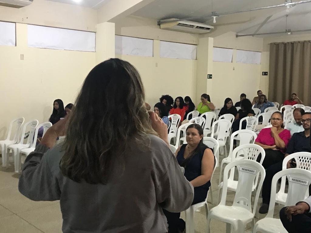 A professora Genilda Lima, diretora-geral do campus, ressaltou, em sua fala, a alegria de estar naquele momento, representando a instituição, enquanto diretora, uma vez que a mesma participou da concepção do curso: “lembro-me da primeira reunião em que discutíamos a implementação do curso… desde a primeira sementinha, que foi plantada pela professora Adriana, até a aprovação do projeto e, finalmente, seu início”. A professora falou, também, sobre a preocupação e as dificuldades enfrentadas para iniciar o curso em plena pandemia de COVID-19. “Apesar de tudo, das dúvidas, de todas as inquietações e desafios enfrentados naquele período difícil, o curso, para a primeira turma, aconteceu de forma remota, mas isso não tirou o brilho de tudo aquilo que nós esperávamos”, pontuou.
