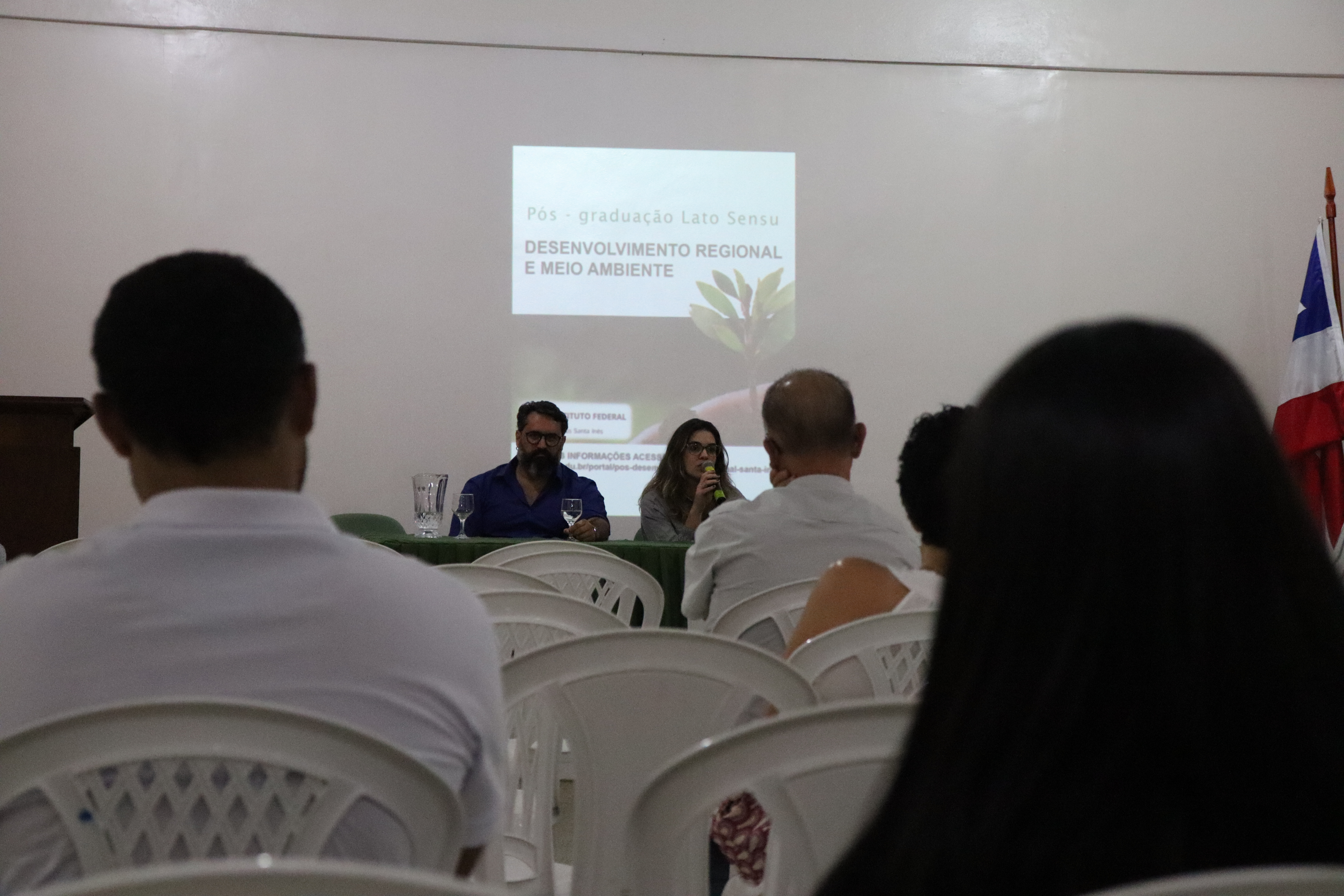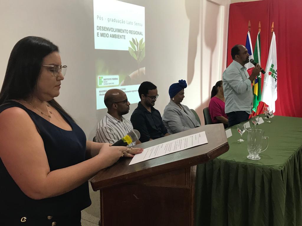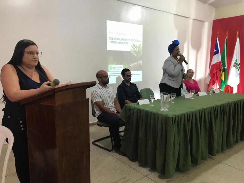 Na noite da última sexta-feira, 25, o Instituto Federal Baiano (IF Baiano) – Campus Santa Inês realizou a aula inaugural do curso de Pós-graduação em Desenvolvimento Regional e Meio Ambiente (PGDRMA). A solenidade, que aconteceu no auditório da biblioteca do campus, contou com cerca de 40 participantes e iniciou às 19h.