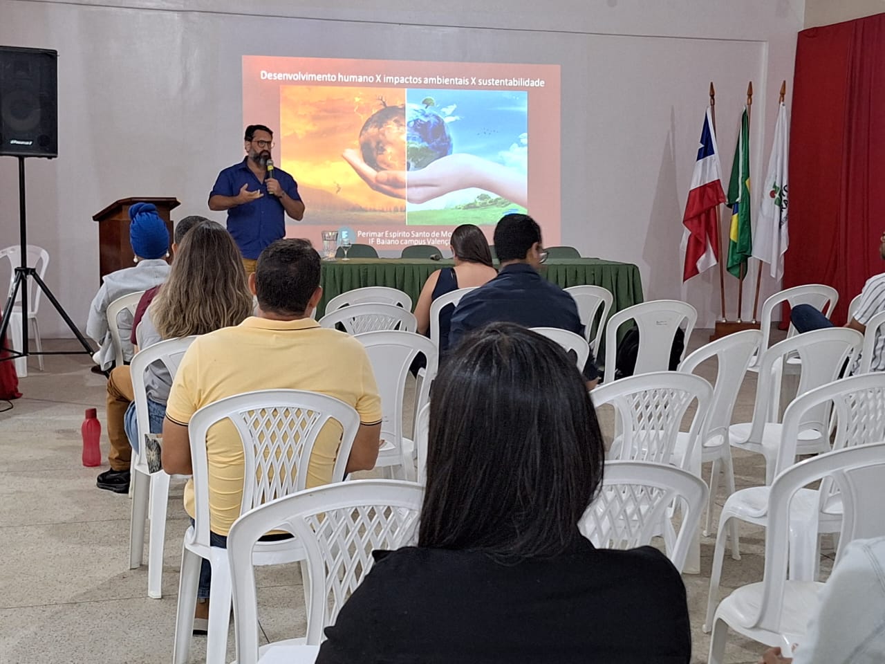 A cerimônia iniciou com João Alves Souza Filho, servidor Técnico em Assuntos Educacionais do campus, que fez uma apresentação de voz e violão, com músicas e poesias, inclusive, autorais. O evento transcorreu com a realização de uma mesa-redonda, na qual os palestrantes, Haialla Carolina Brandão, do Consórcio de Desenvolvimento Sustentável do Vale do Jiquiriçá – CONVALE e o professor Perimar Moura do IF Baiano – Campus Valença, trataram de temas relacionados a Meio Ambiente e Sustentabilidade.
