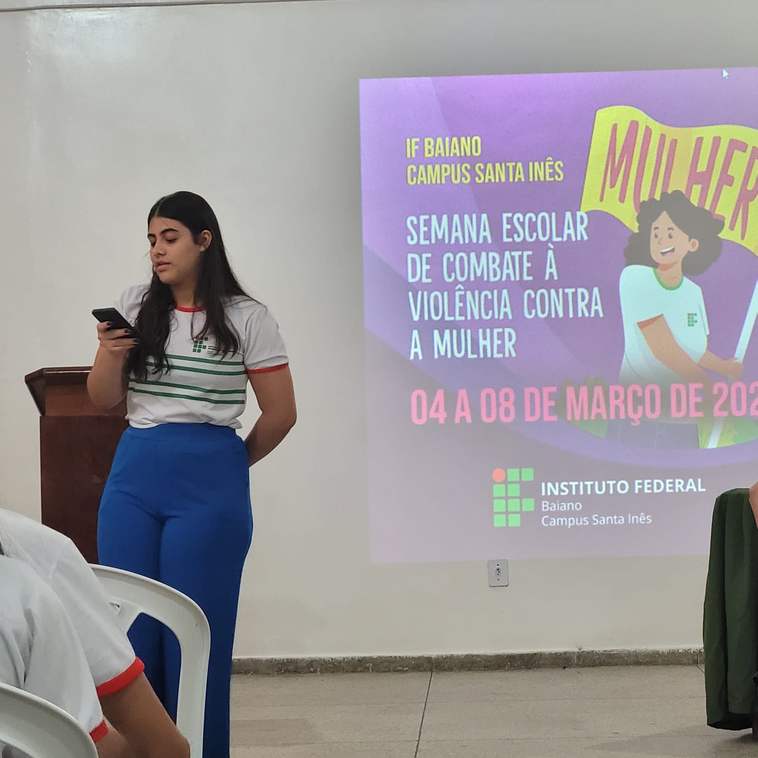 O objetivo do encontro foi contemplar a Lei nº 14.164 de 2021 que prevê a inclusão da violência contra a mulher no currículo da educação básica; instituir a Semana Escolar de Combate à Violência Contra a Mulher no IF Baiano – Campus Santa Inês. A programação contou com exposições imagéticas em stands ao redor do auditório, apresentações teatrais, declamações de poesias de célebres escritoras e também autorais.
