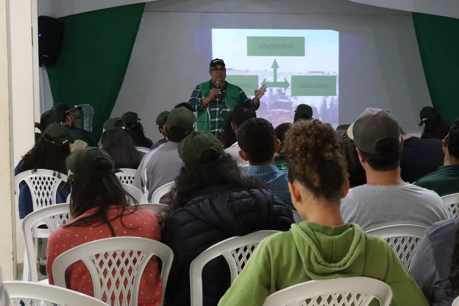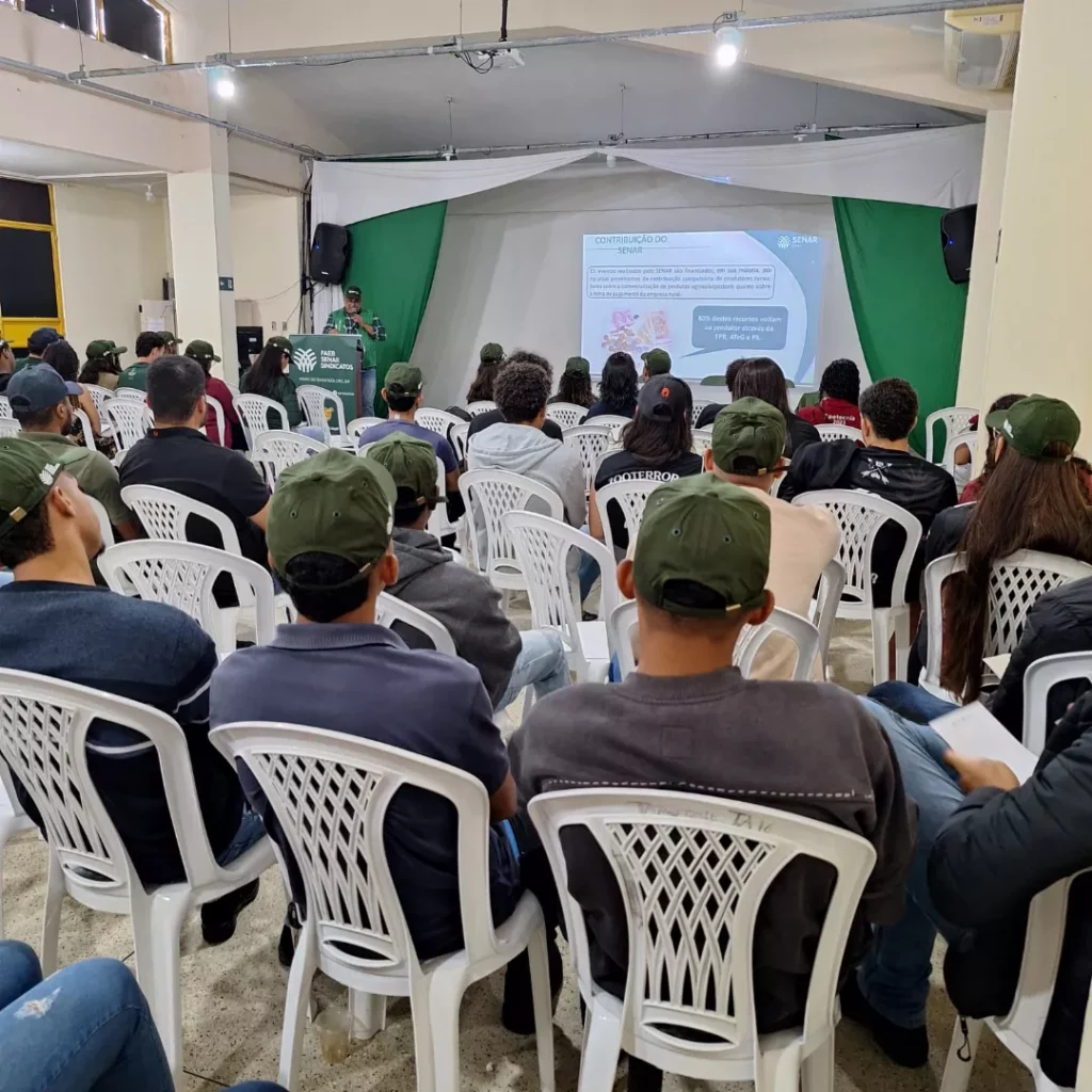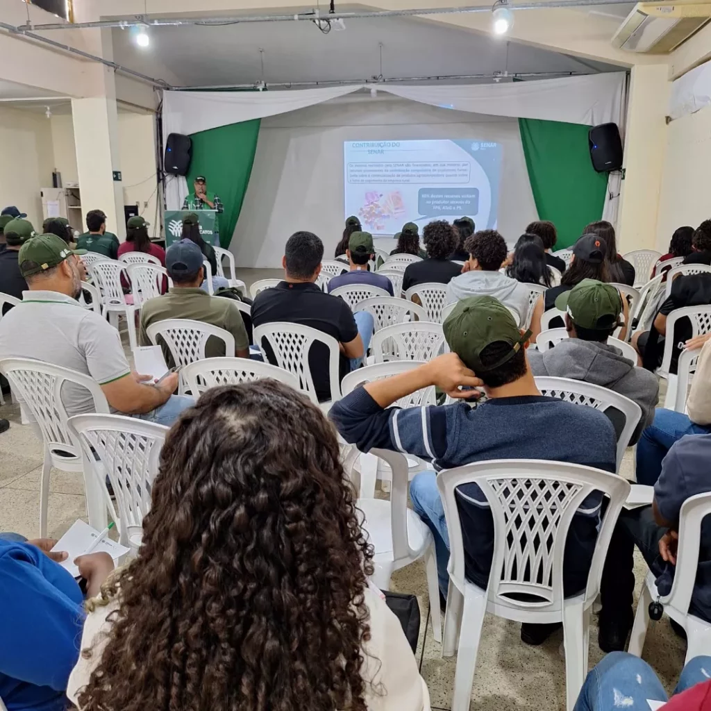 Geógenes Gonçalves, do SENAR, explicou o papel da instituição no evento: “É uma proposta da gente trazer informações de como funciona o SENAR referente aos cursos de capacitações até na área desses alunos que são estudantes de agropecuária, zootecnia, entre outras áreas, da parte de ciências agrárias que estão familiarizadas com o tema. O tema que nós falamos sobre manejo de gado de corte e também de sanidade. Então, a proposta é a gente tentar passar algumas informações e contribuições. Vale destacar também que os egressos que estão presentes no curso que também trocam informações a respeito dos assuntos que foram citados na palestra”.