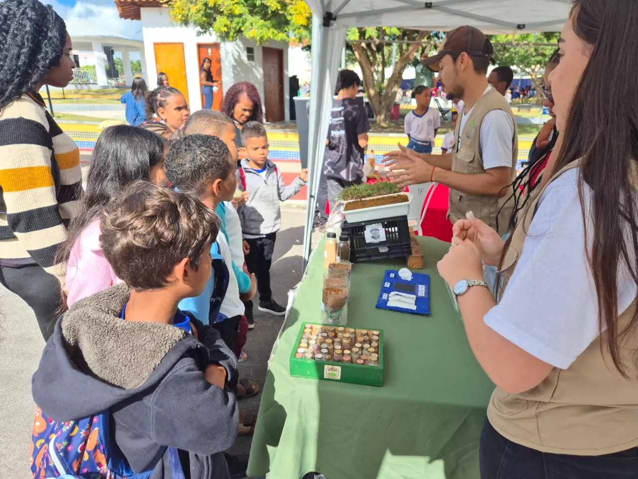 O Instituto Federal Baiano (IF Baiano) – Campus Santa Inês marcou presença de destaque na III Feira Territorial da Agricultura Familiar e Economia Solidária (FETAFES) do Vale do Jiquiriçá, realizada na Praça Mário Cravo, em Cravolândia, no último sábado, 30 de setembro. Em uma exposição que integrou ensino, pesquisa e extensão, a instituição apresentou ao público as diversas atividades desenvolvidas por seus grupos de estudo e os valiosos recursos oferecidos aos seus estudantes, reforçando seu papel no desenvolvimento regional.