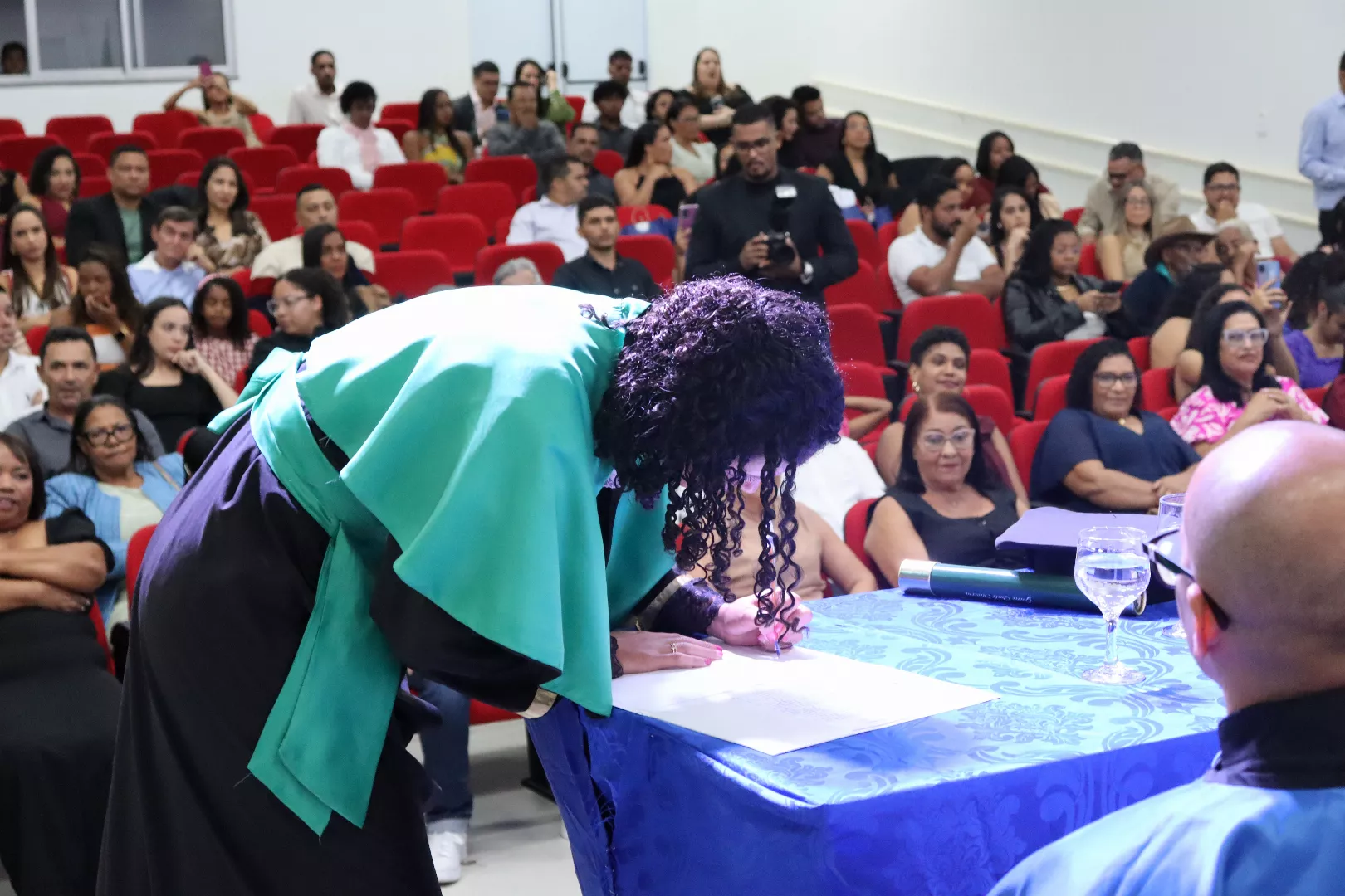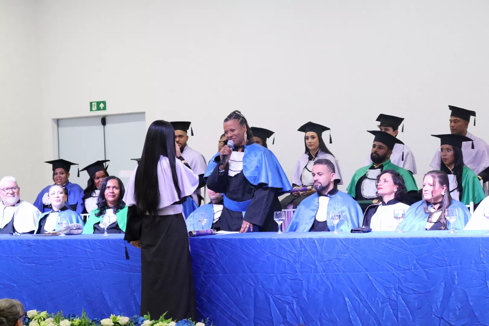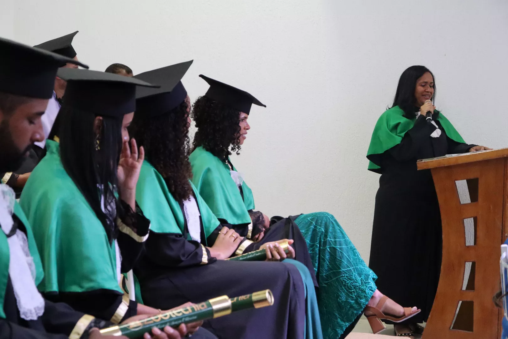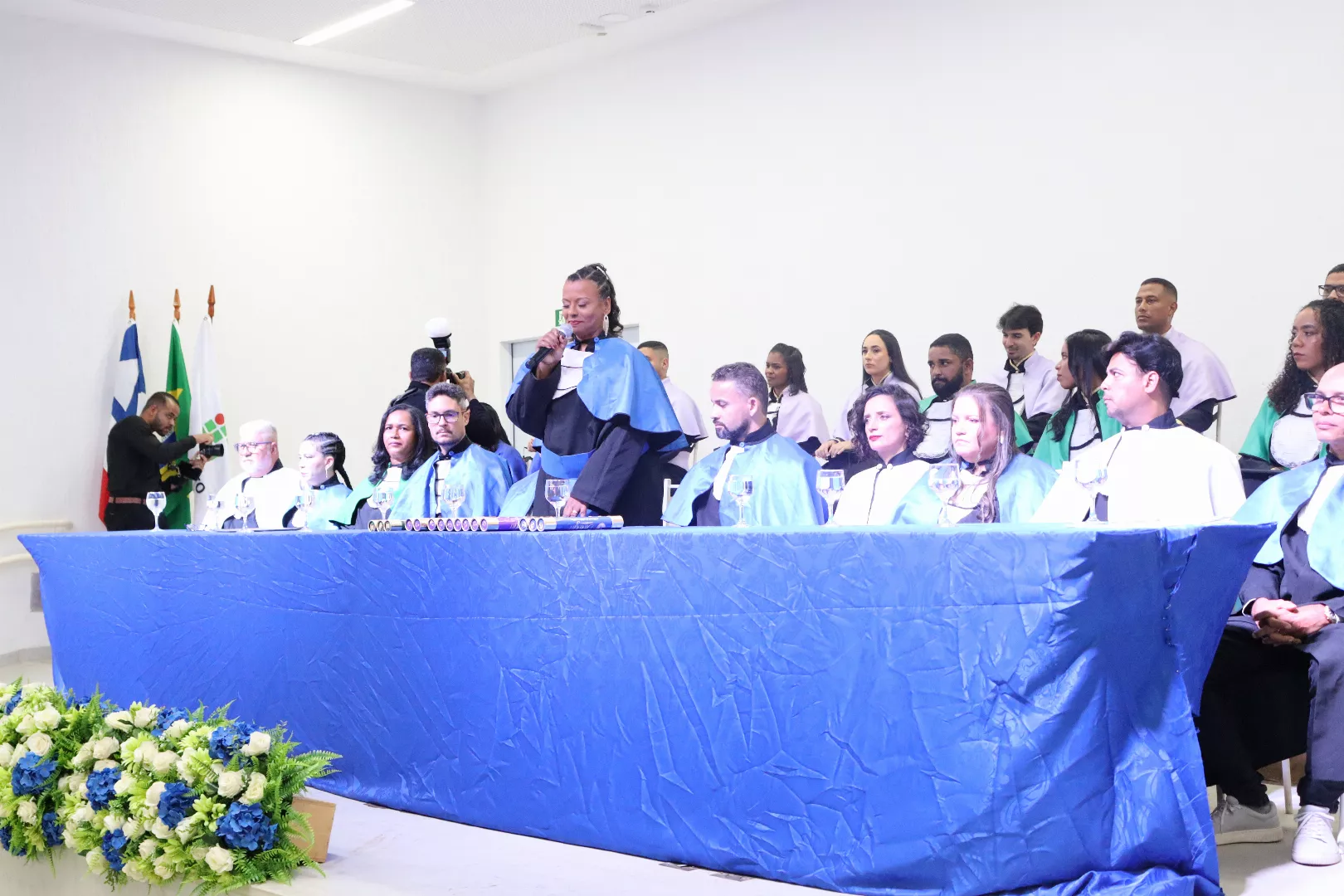 A Professora Rosineide Braz, paraninfa da turma de Ciências Biológicas, definiu a formatura como um momento simbólico que celebra o fim de um ciclo e anuncia novos começos. Ela valorizou as trajetórias individuais, a importância da escola pública como espaço de transformação e o papel das famílias como pilares da conquista. Relembrando seus 15 anos no campus, homenageou os colegas que contribuíram para a construção do curso e reafirmou seu compromisso com a educação pública e os sonhos que florescem no Vale do Jiquiriçá.