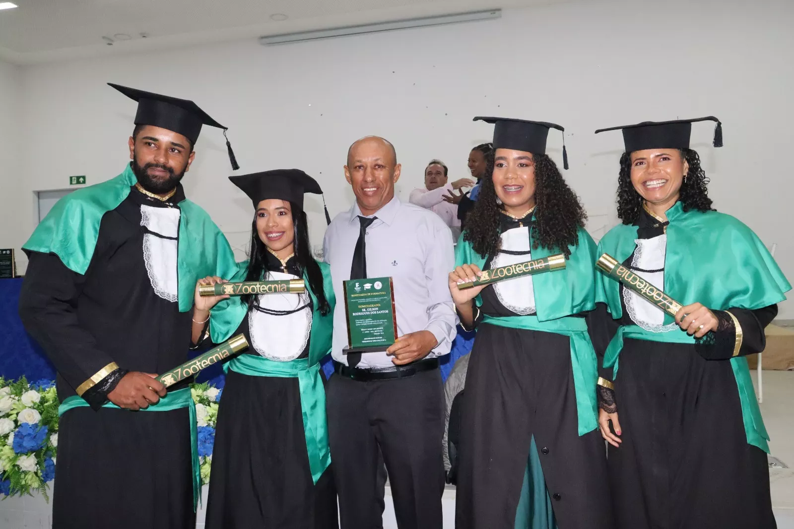 O Teatro Anália Oliveira Santana foi palco de uma noite memorável no último sábado, 12 de julho, com a cerimônia de formatura dos cursos de Bacharelado em Zootecnia, Licenciatura em Ciências Biológicas e Licenciatura em Geografia do Instituto Federal Baiano (IF Baiano) – Campus Santa Inês. O evento, que teve início às 18h, reuniu cerca de 160 convidados para celebrar a conquista de uma nova geração de zootecnistas e professores.