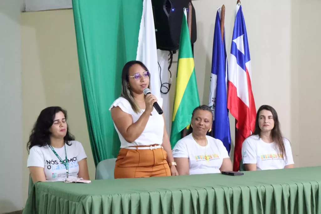 Durante sua fala, a Diretora-geral Genilda Lima destacou a alegria em receber a nova turma e ressaltou o significado simbólico do momento. Em suas palavras, estar à frente do IF Baiano como mulher e acolher outras mulheres em um projeto de transformação representa um gesto de valorização, respeito e fortalecimento coletivo.
