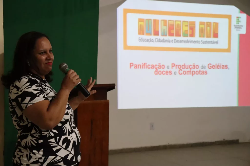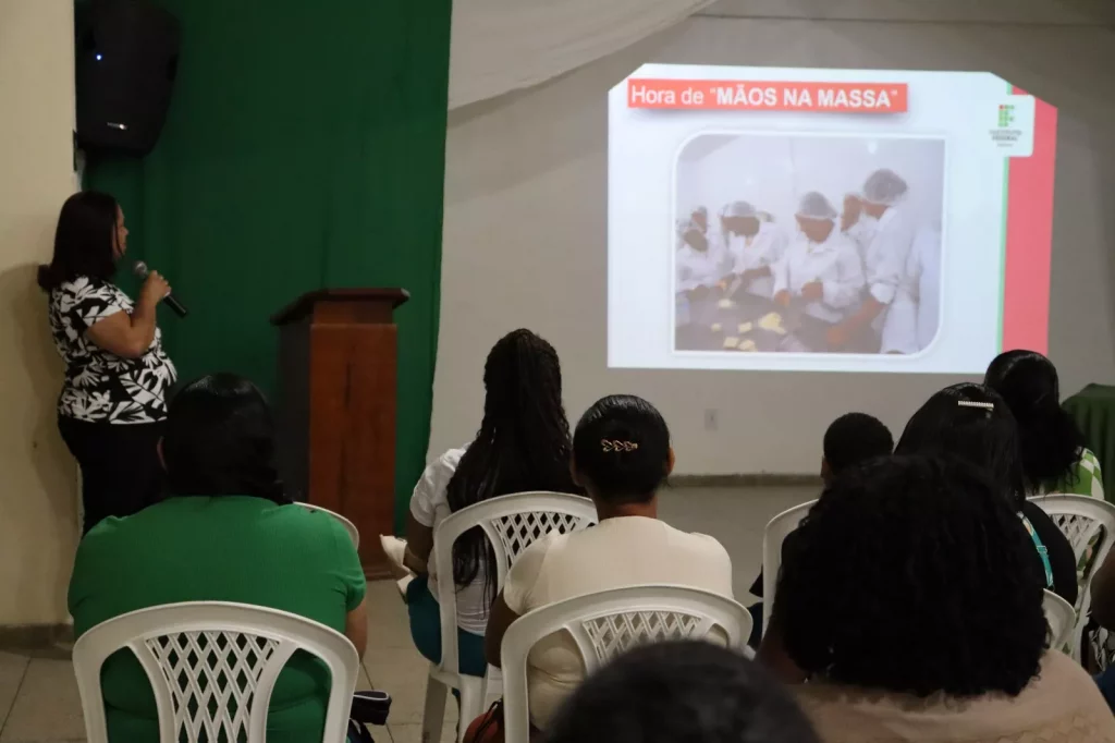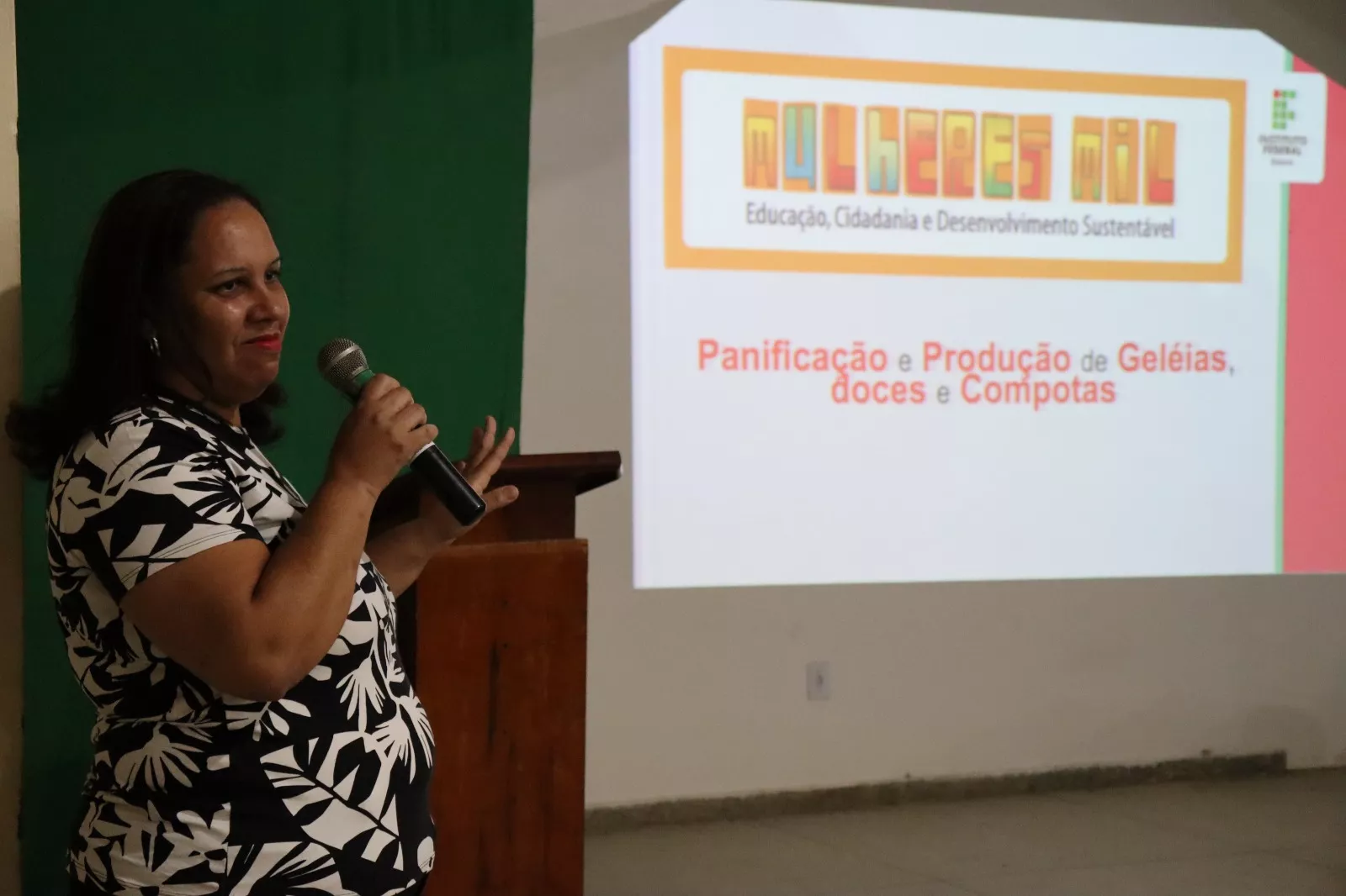 A cerimônia foi conduzida pela mestre de cerimônias Nelian Costa, que deu boas-vindas às participantes e relembrou a trajetória do programa no Campus Santa Inês. A primeira edição, realizada em 2012, acolheu 100 mulheres do Vale do Jiquiriçá nos cursos de Processamento de Doces e Compotas e Panificação. Após seu relançamento, o campus novamente reafirma seu compromisso com a formação de mulheres do território, agora com a oferta do curso de Salgadeiro, pactuado para atender 40 participantes nos anos de 2024 e 2025.