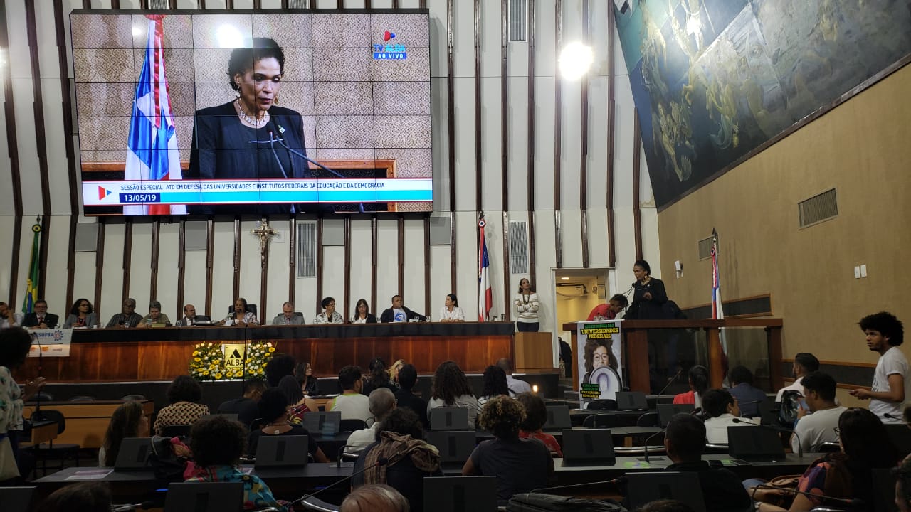 Em seguida, os parlamentares e dirigentes das instituições federais de educação seguiram para a Assembleia Legislativa da Bahia (ALBA) para participar da sessão especial “Ato em defesa das universidades e institutos federais e da democracia”, presidida pela deputada estadual Olívia Santana. Além das autoridades, a sessão contou com as manifestações de representantes de sindicatos, movimento estudantil e outras organizações defensoras da educação pública federal na Bahia.