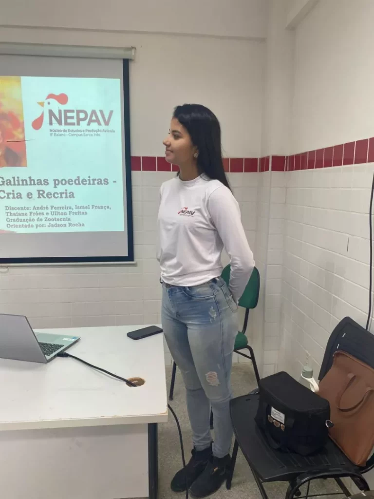 Thaiane Fróes, vice-coordenadora discente do NEPAV, destacou a importância da troca de conhecimentos: “Também buscamos compartilhar os conhecimentos adquiridos no curso e no grupo de estudos, contribuindo para o desenvolvimento sustentável da comunidade e para o fortalecimento da avicultura como alternativa de renda”.