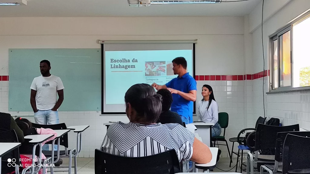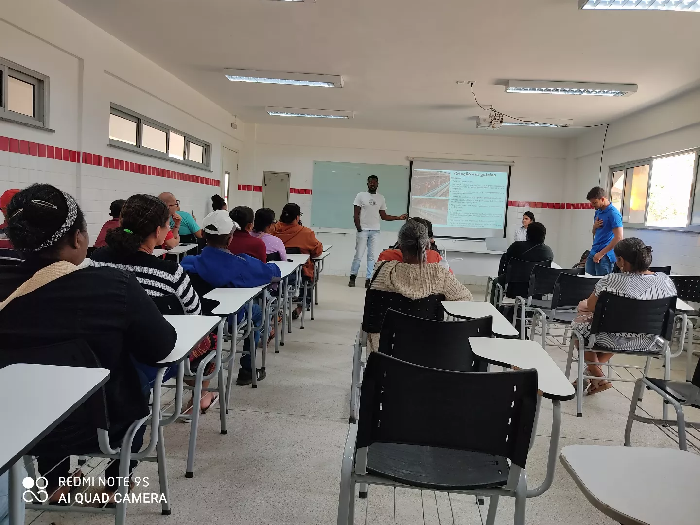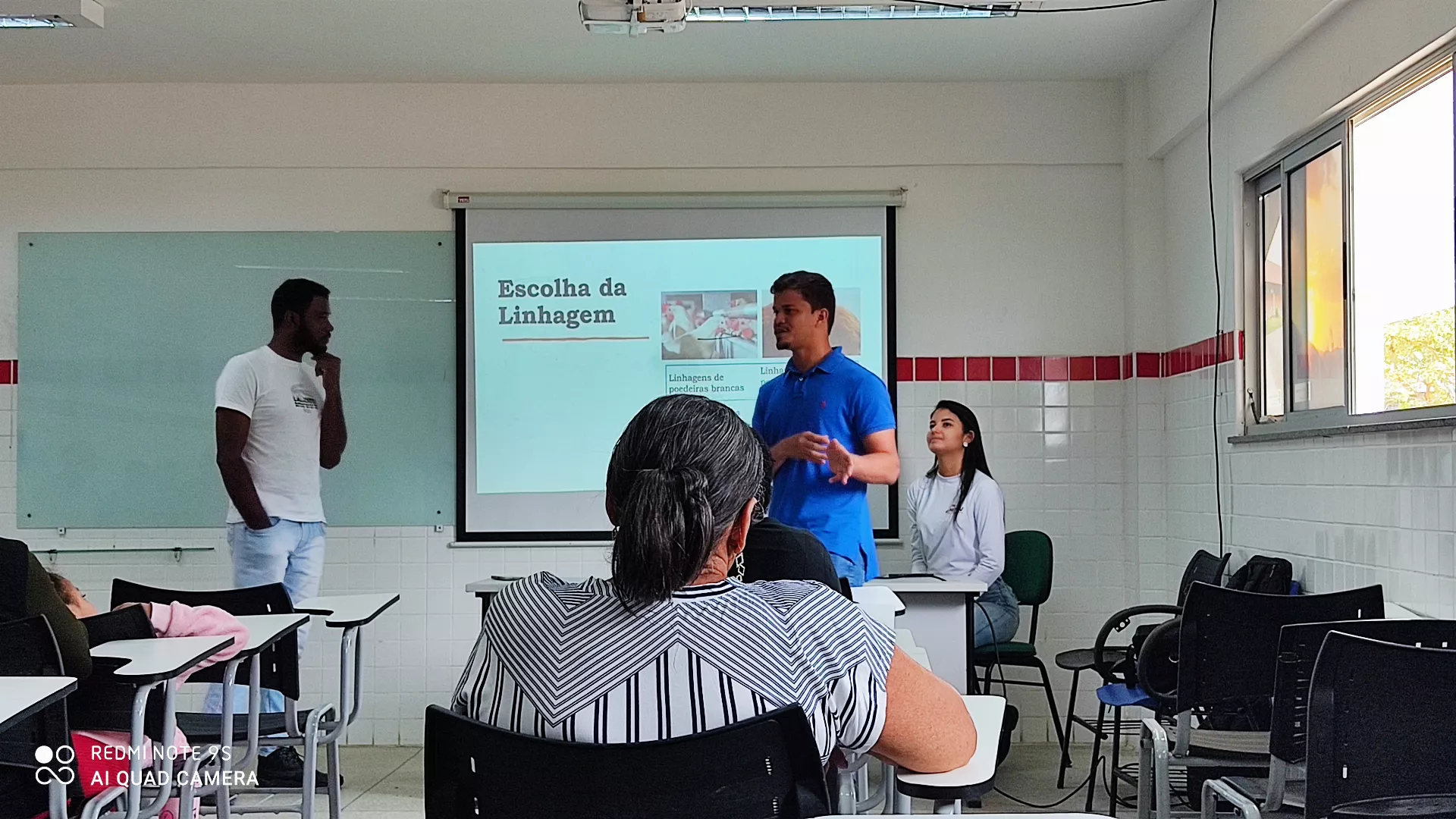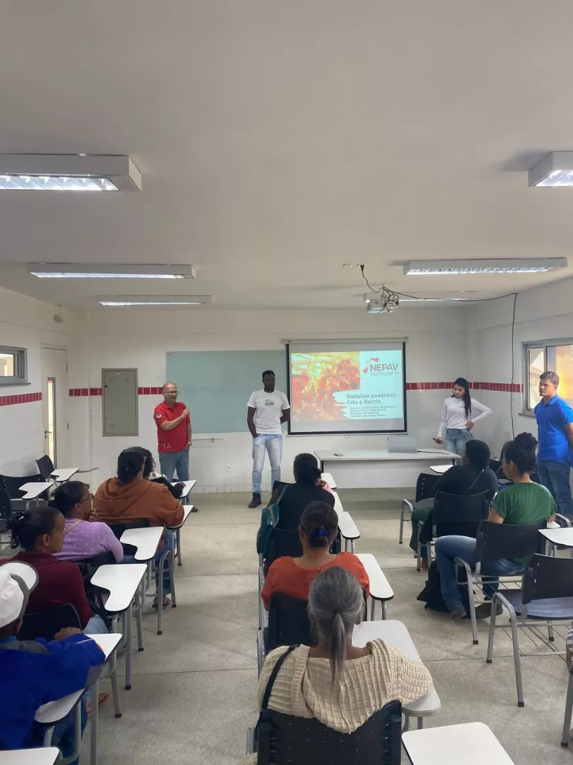 Com a orientação do professor Jadson Rocha, coordenador do NEPAV, a palestra foi conduzida pelo coordenador discente Israel França e a vice-coordenadora Thaiane Fróes. A atividade também contou com o apoio essencial dos demais membros do grupo: Uilton Dias, André Ferreira e Anderson Oliveira, todos estudantes do curso de Bacharelado em Zootecnia do IF Baiano – Campus Santa Inês. O evento reforça o compromisso do instituto com o desenvolvimento regional e a qualificação dos produtores rurais.