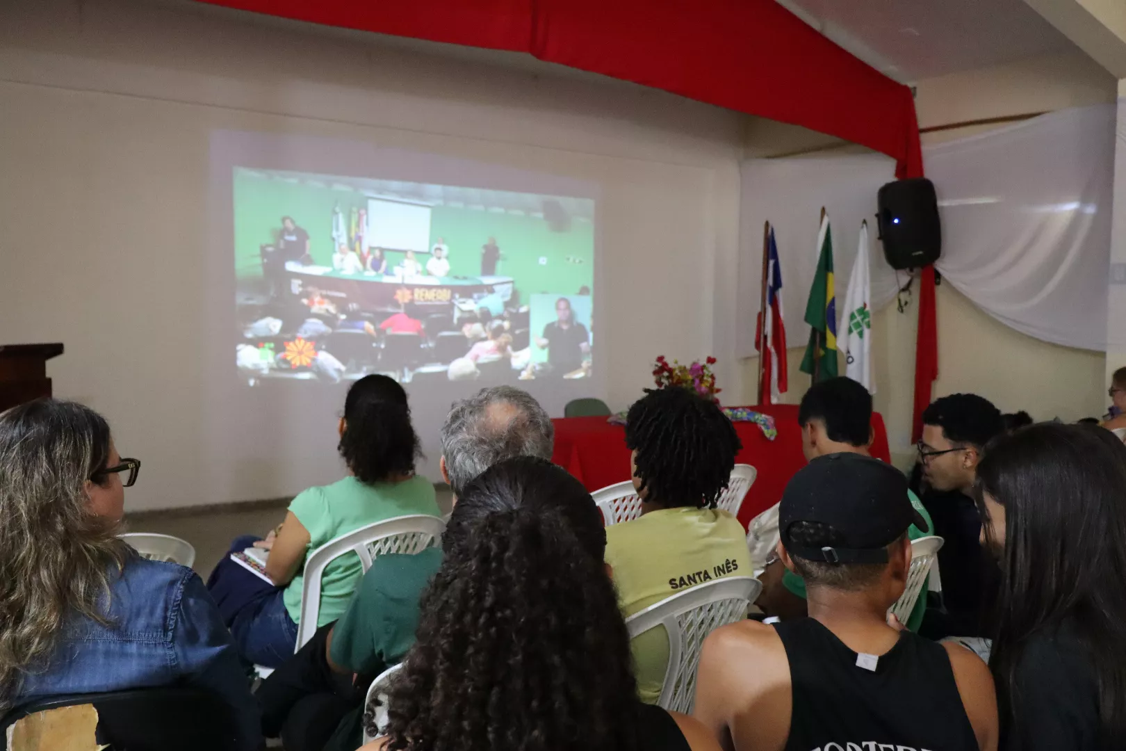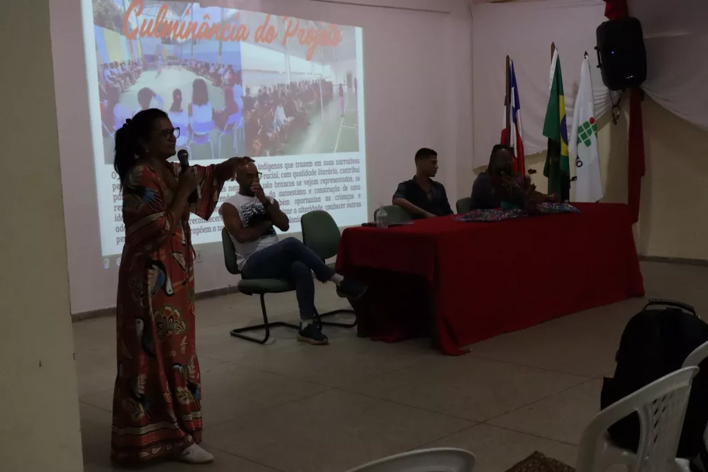 Para garantir a inclusão dos estudantes dos Cursos Técnicos integrados ao Ensino Médio, essas oficinas foram replicadas na manhã do dia 28 de maio, no Pavilhão dos Cursos Superiores. O auditório do campus também foi um polo de atividades, transmitindo ao vivo a Conferência de Abertura e mesas-redondas que abordaram temas cruciais como “Políticas Afirmativas Étnico-Raciais no Brasil”, “Interseccionalidades e Políticas Afirmativas do IF Baiano” e “Desafios para a Consolidação da Educação Antirracista na Bahia”. Esta última mesa contou com a notável participação da jornalista Valéria Lima, neta de Mãe Hilda Jitolu e fundadora do Instituto da Mulher Negra Mãe Hilda Jitolu.