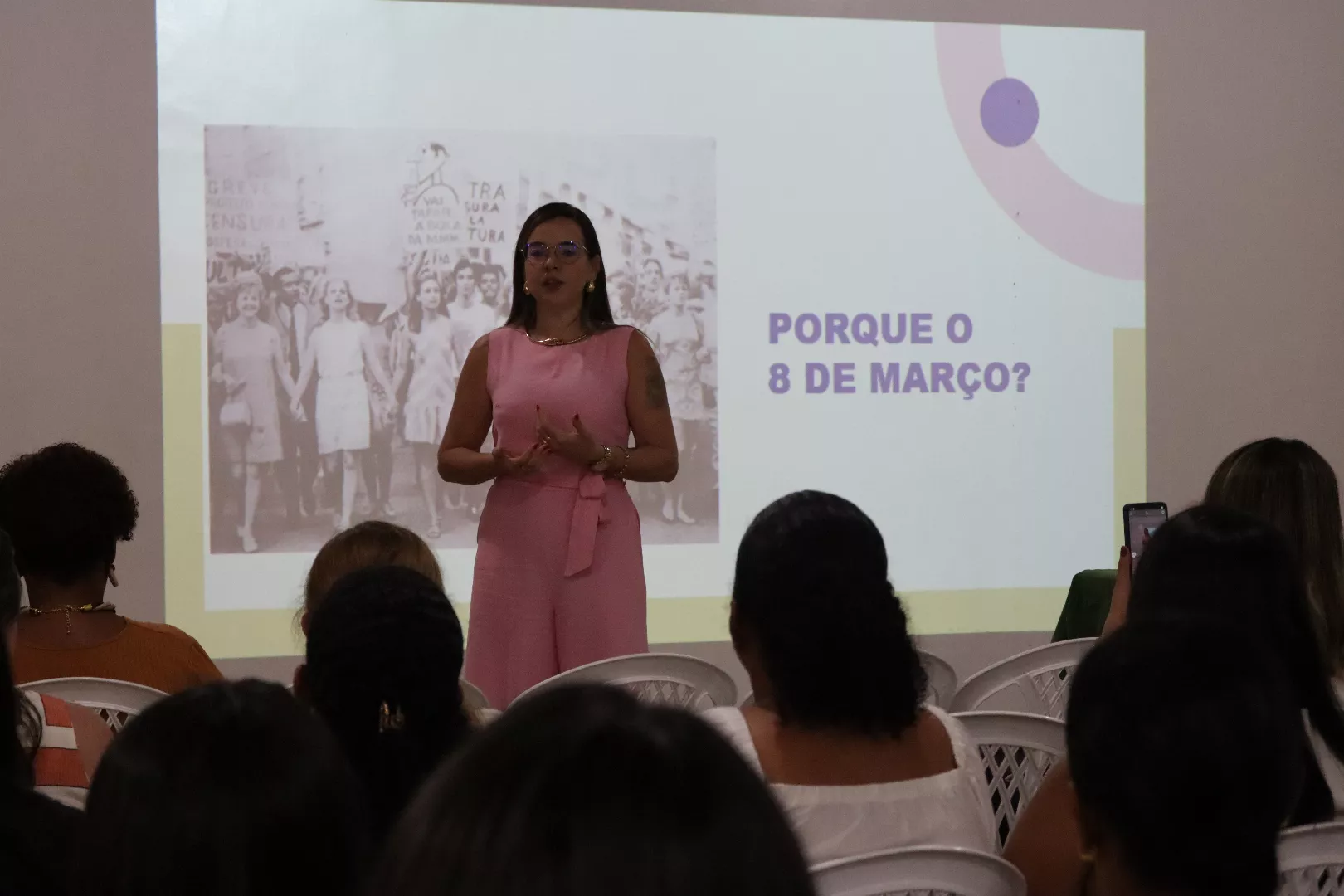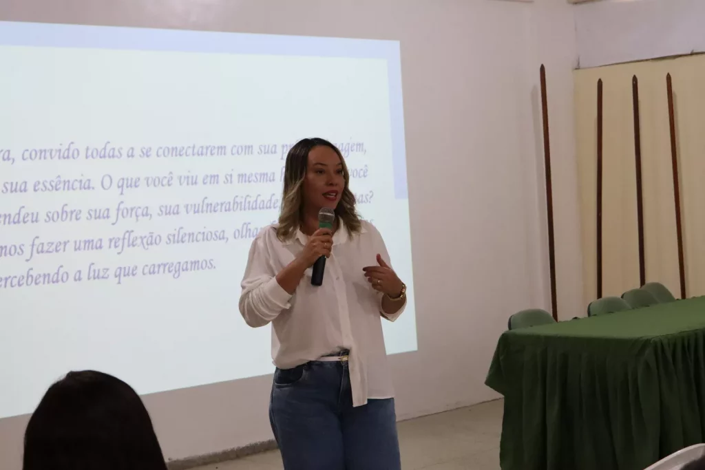 Além das diversas oficinas e serviços de beleza, a psicóloga do campus, Meirelande Rocha, conduziu uma palestra abordando temas como autoamor, autocuidado e os desafios enfrentados pelas mulheres na sociedade. Em sua fala, a psicóloga destacou a importância da união na luta por igualdade e justiça, ressaltando a necessidade de espaços de acolhimento e fortalecimento. “Vivemos em uma sociedade que, muitas vezes, cobra das mulheres uma constante sobrecarga de responsabilidades. Por isso, é essencial que as mulheres se reconheçam e se fortaleçam em espaços de acolhimento, onde possam compartilhar experiências, ouvir e serem ouvidas,” afirmou Meirelande.