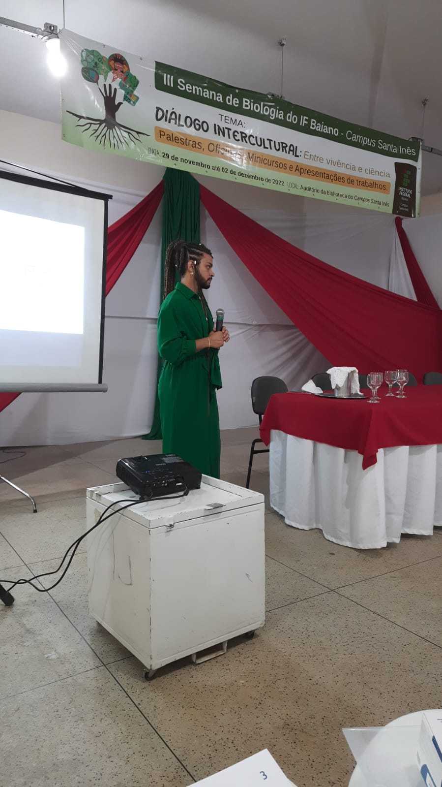 Passados dois anos da última edição, a Semana de Biologia volta a acontecer no IF Baiano Campus Santa Inês, no período de 29 de novembro a 01 de dezembro de 2022, em sua terceira edição. O evento aconteceu predominantemente no Auditório da Biblioteca do Campus com a temática “Diálogo Intercultural: entre vivência e ciência”.