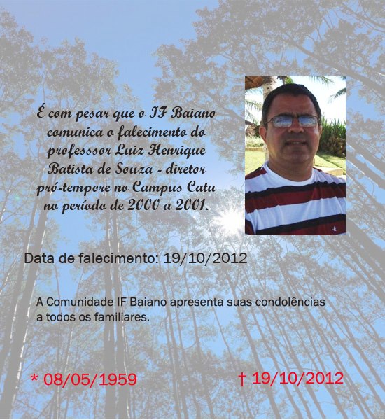 A direção geral do Campus Santa Inês presta condolências e oferece seu apoio aos parentes e amigos do saudoso professor.