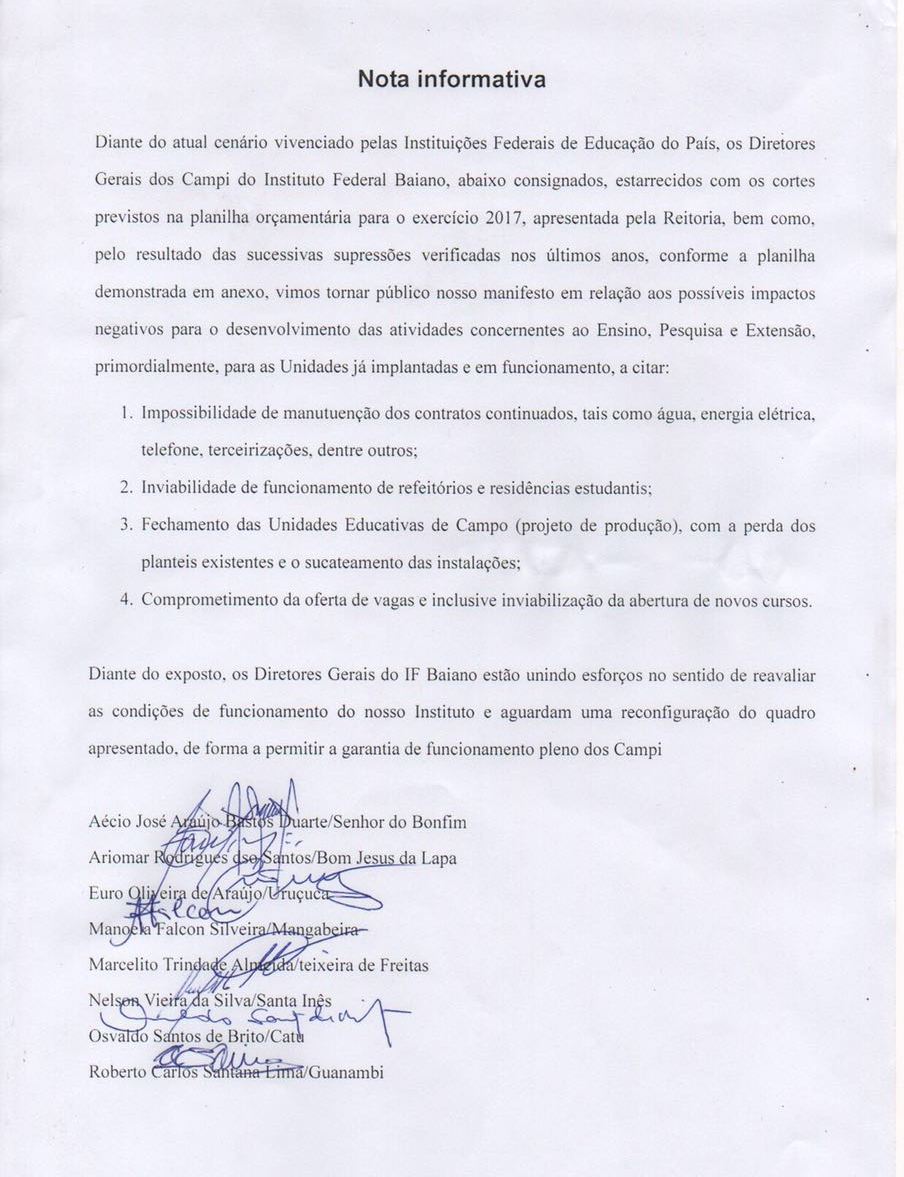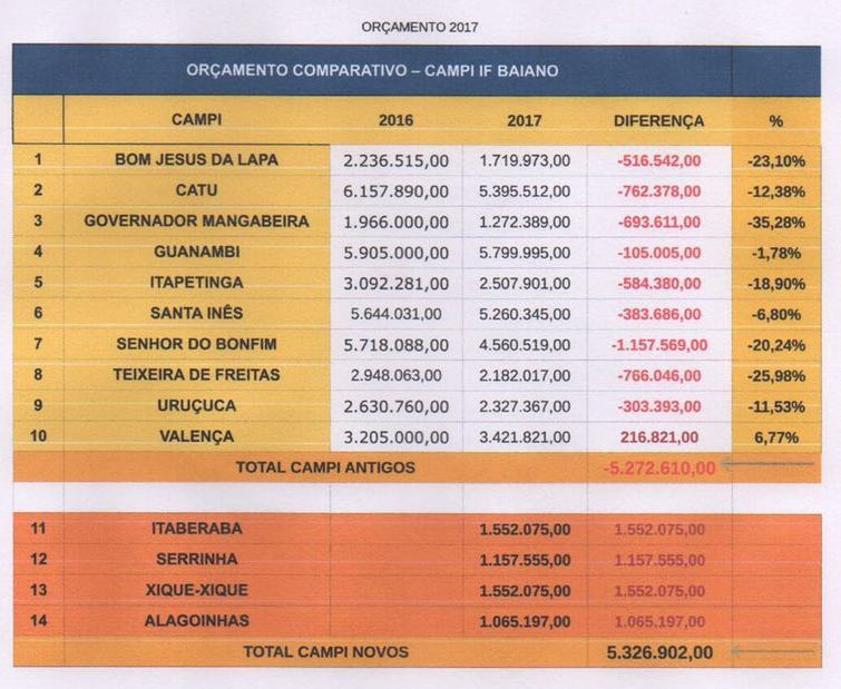 Publicado Nota Informativa do Cenário Orçamentário e o Quadro de Orçamento Comparativo para os Campi (Período de 2016/2017)