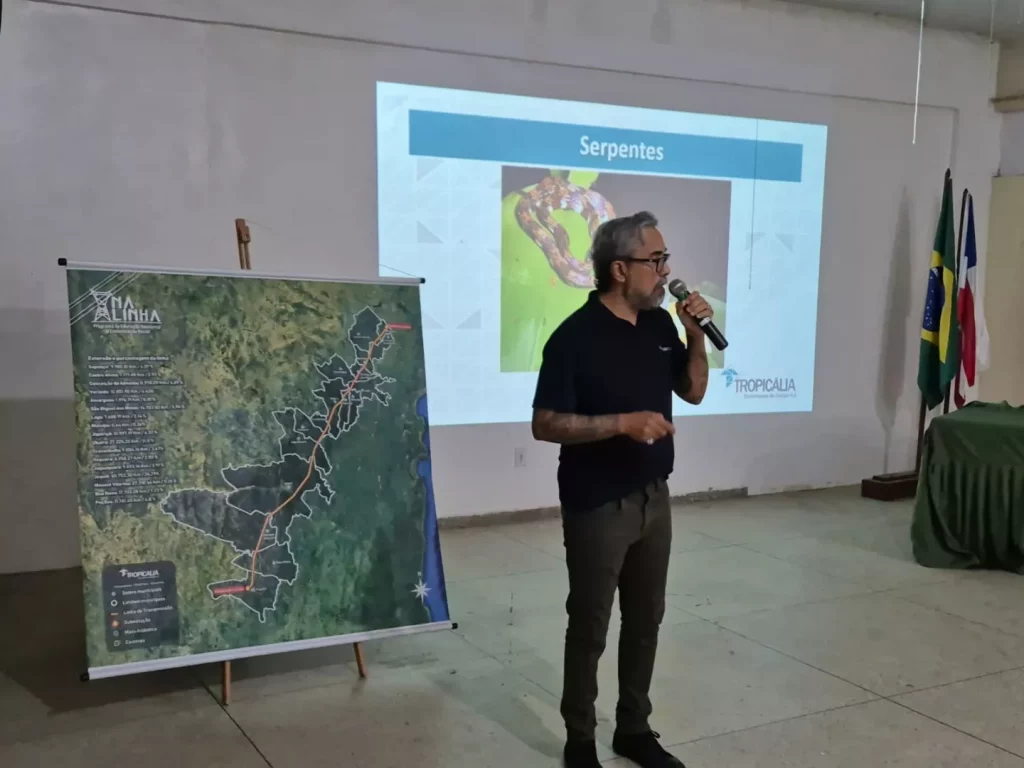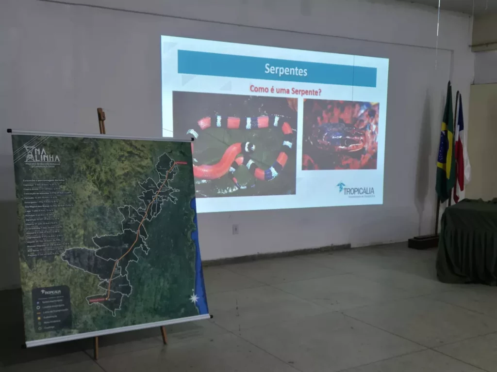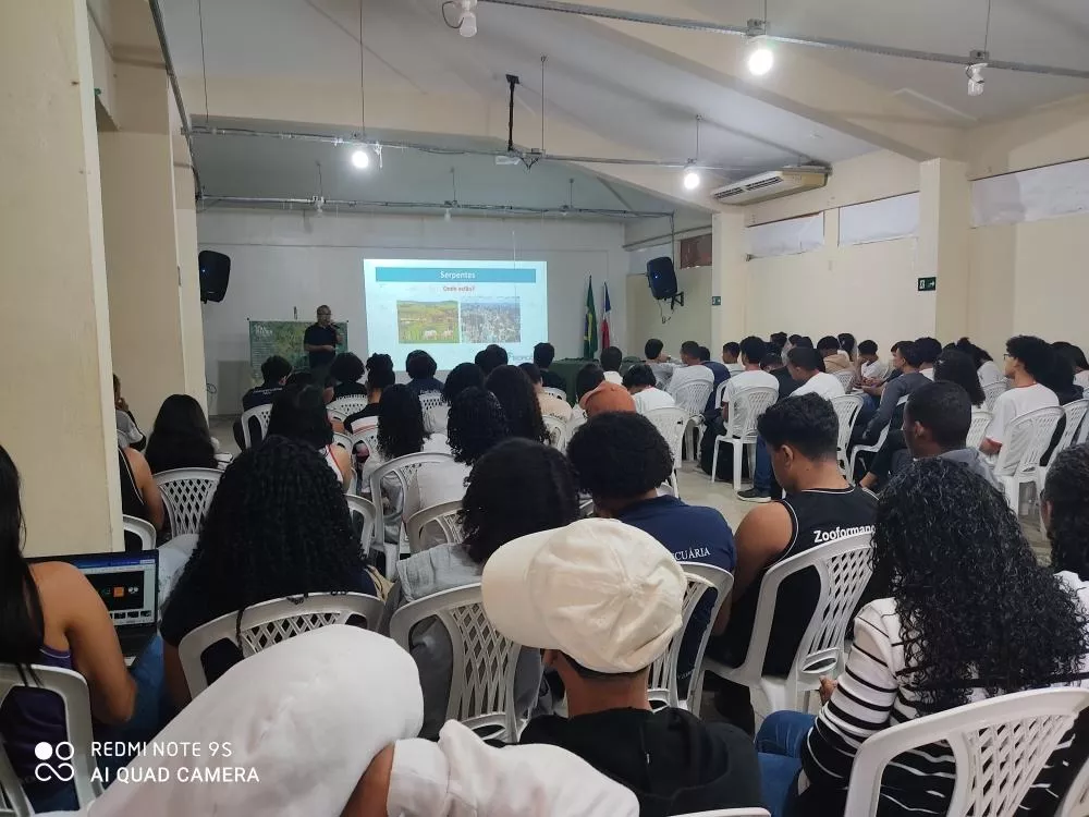 Na manhã desta terça-feira, 12 de agosto, estudantes e servidores do IF Baiano – Campus Santa Inês se reuniram no auditório da biblioteca para a palestra “Serpentes: História Natural, Conservação e Acidentes”. O evento, uma iniciativa do Grêmio Estudantil Carlos Lamarca em parceria com a gestão do campus e a empresa Tropicália – Transmissão de Energia S.A., foi ministrado pelo Biólogo e analista ambiental da Tropicália, Donizete Pereira.