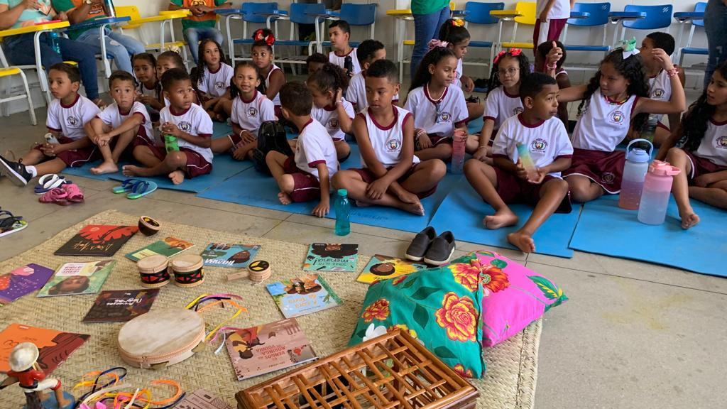 O projeto começou com uma oficina de contação de histórias na perspectiva da Pedagogia Griô, ministrada pela atriz e educadora Karla Cajaiba, que ajudou a formar o repertório da equipe executora. Antes dos encontros com os estudantes, houve uma roda de conversa com professores, coordenadores pedagógicos e a equipe da Secretaria de Educação municipal, discutindo a temática “A experiência docente e o perigo de uma história única: tecendo caminhos para uma educação antirracista”.