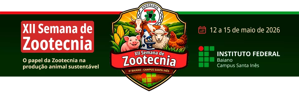 A XII Semana de Zootecnia do Instituto Federal de Educação, Ciência e Tecnologia Baiano (IF Baiano) – Campus Santa Inês é um evento acadêmico-científico consolidado, que integra ensino, pesquisa e extensão, reunindo estudantes, profissionais e a comunidade em torno de debates atuais da área.
