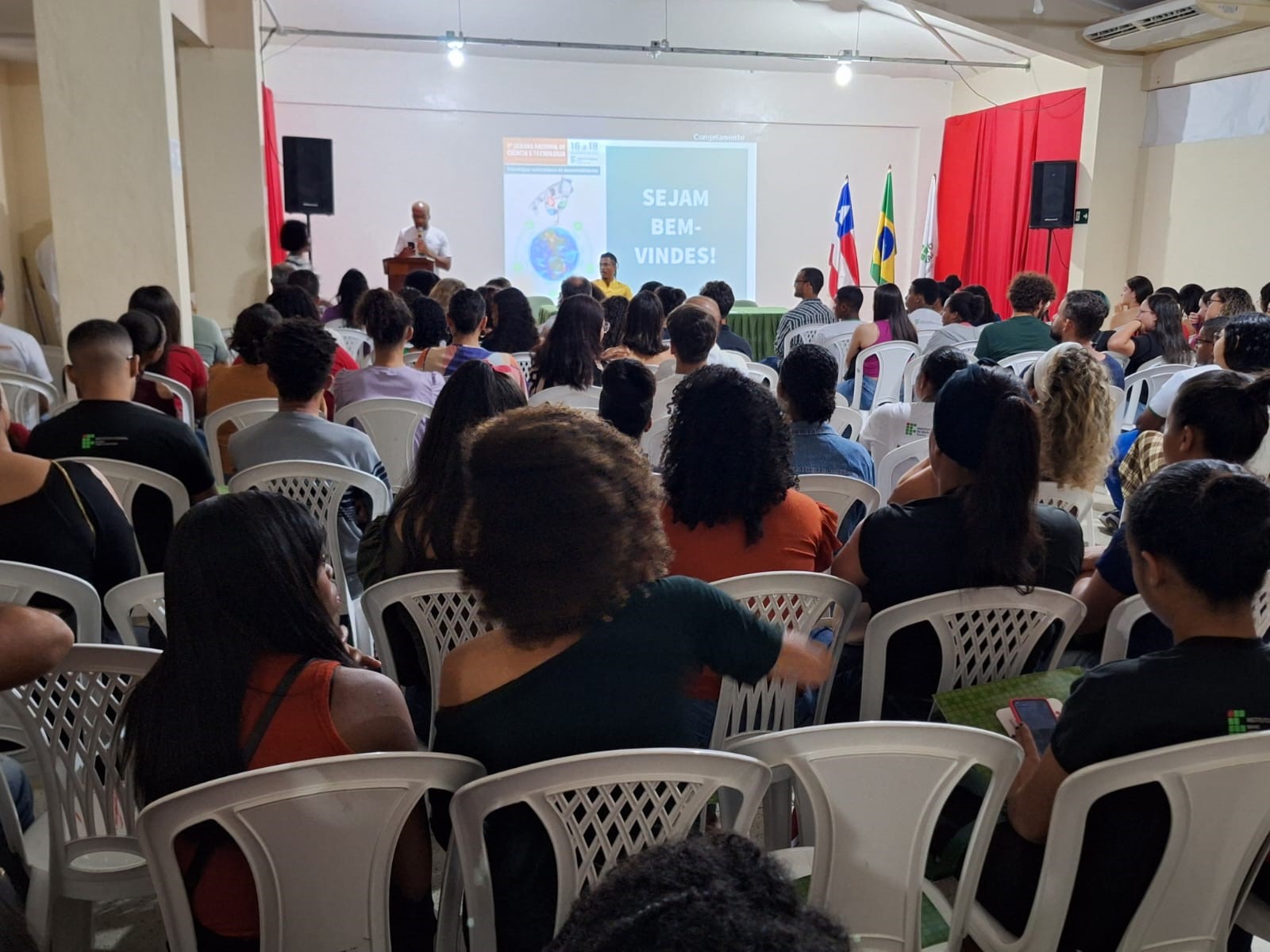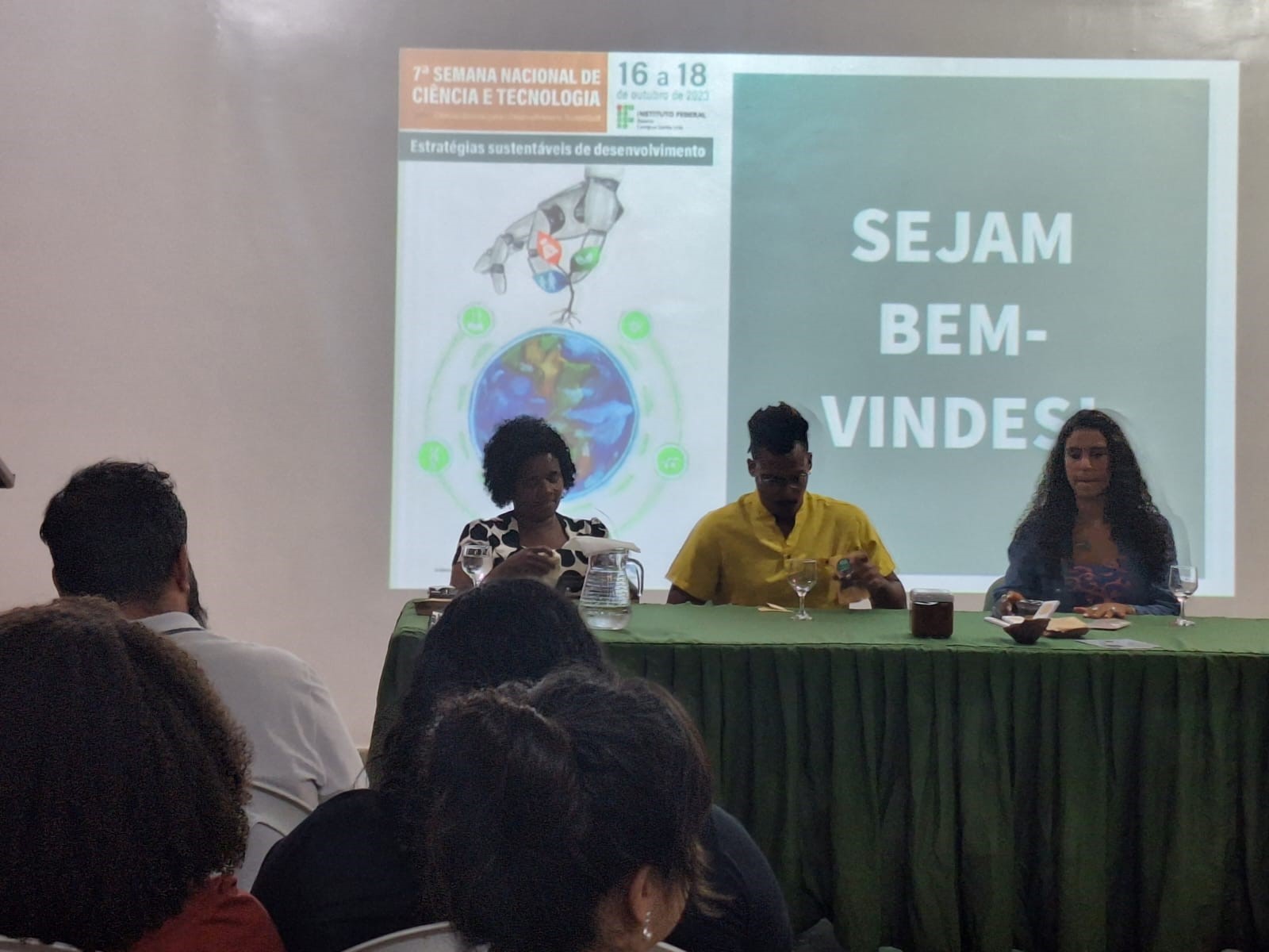 Logo no primeiro dia, 16, com a casa lotada, a Diretora-Geral, professora Genilda Lima, oficializou a abertura da 7ª edição da Semana Nacional de Ciência e Tecnologia no campus que contou, com apresentações culturais: músicas (voz e violão) e roda de capoeira as quais foram protagonizadas por estudantes do campus. Na oportunidade, uma singela homenagem foi feita ao senhor Moisés Lima Alves, funcionário que esteve presente e contribuiu com a instituição desde o início da sua construção e que teve sua vida ceifada, no dia 10 de outubro por uma tragédia automobilística. Finalizando esse primeiro momento, uma “mesa redonda” composta pela Sra. Damiana Martins dos Santos, Profa. Flora Souza Bacelar (UFBA) e pelo Prof. Lucas da Silva Maia conduzindo uma discussão cuja temática foi “Estratégias sustentáveis de desenvolvimento”.