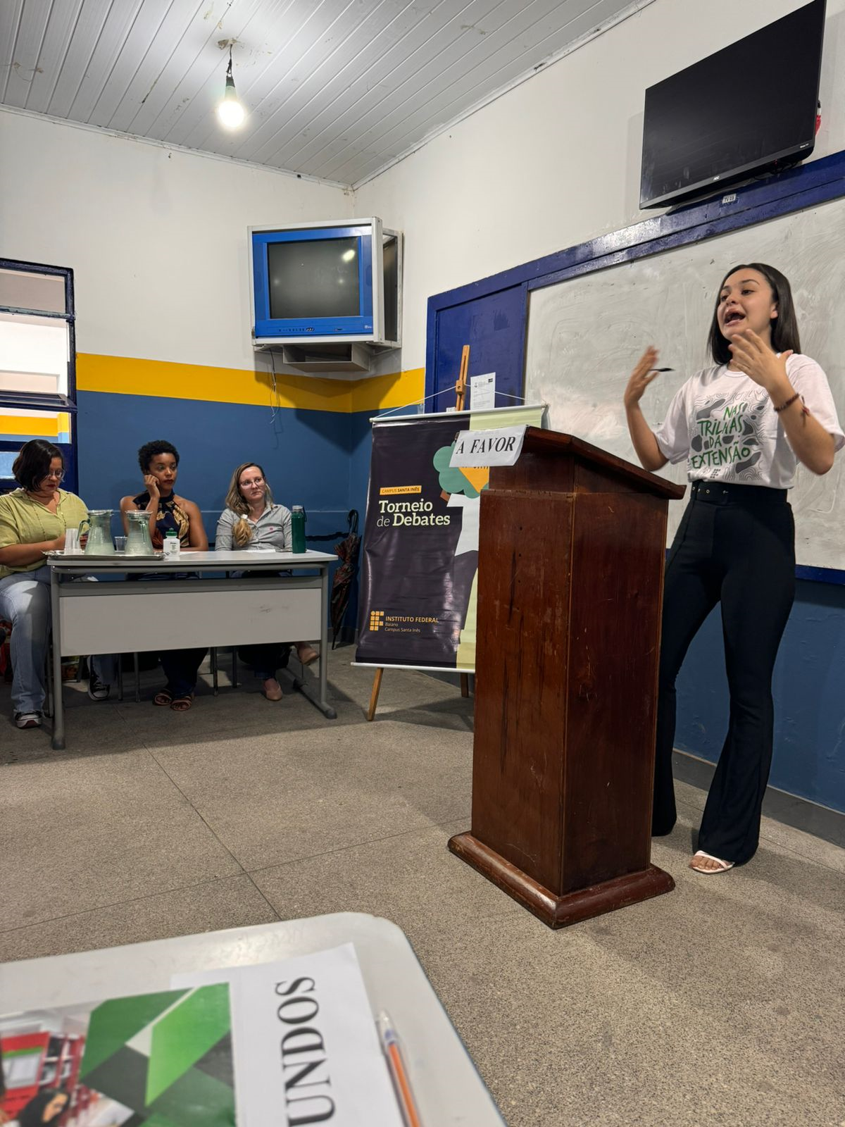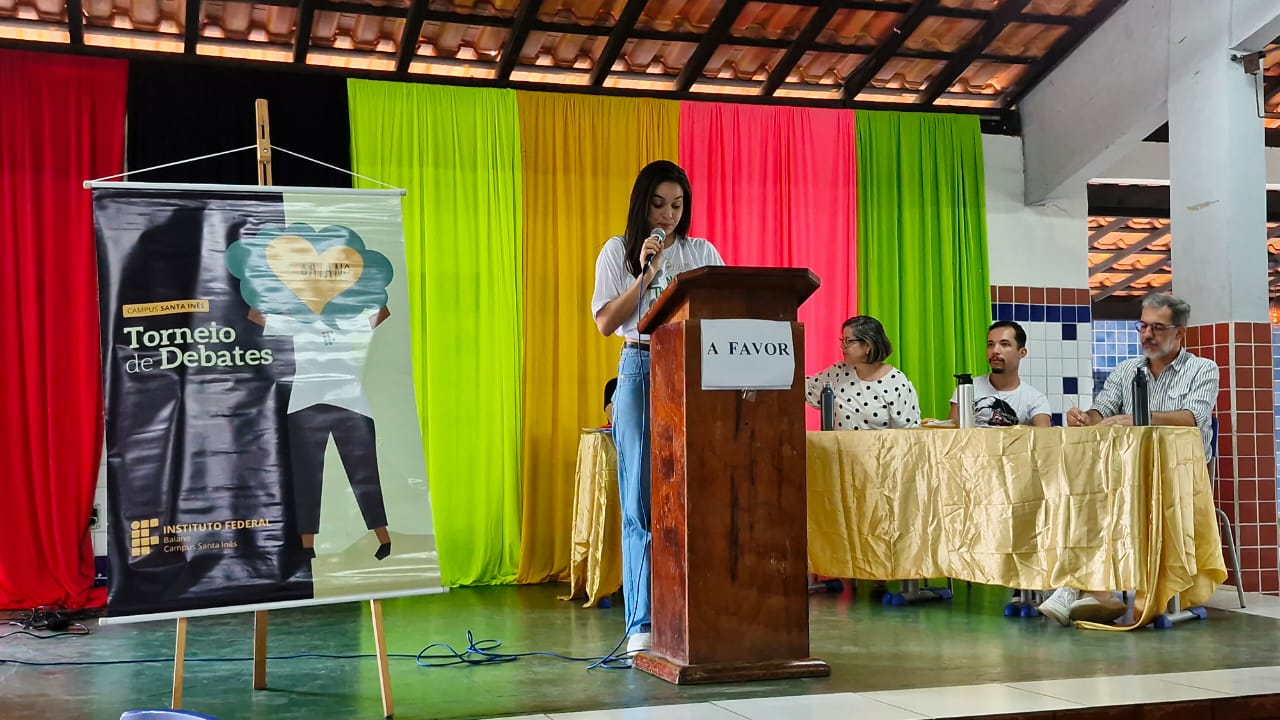 O Instituto Federal Baiano – Campus Santa Inês promoveu, na última semana, o “Torneio de Debates sobre Temas da Atualidade”, projeto de extensão coordenado pela professora Marilete Cândido de Matos Previero. O projeto, aprovado em edital de extensão do Programa Institucional de Bolsas de Iniciação em Extensão em 2023, tem o objetivo de promover discussões sobre temas atuais, desenvolvendo o pensamento crítico, a tolerância, o respeito e a valorização da diversidade entre os estudantes de escolas públicas.