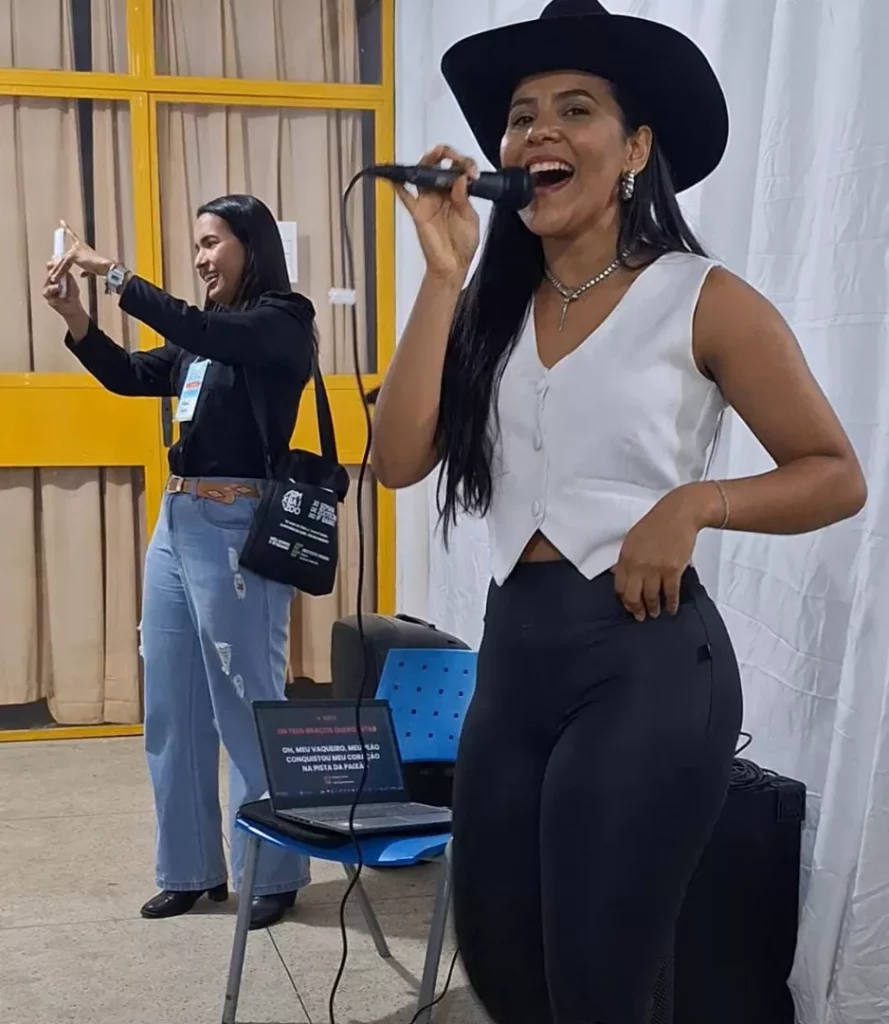 Para encerrar a noite de abertura em grande estilo, os presentes foram agraciados com uma animada apresentação de músicas sertanejas, comandada pela talentosa estudante do Bacharelado em Zootecnia, Vanessa Neri. Um delicioso lanche também foi servido aos convidados, proporcionando um momento de confraternização e descontração após as atividades formais.