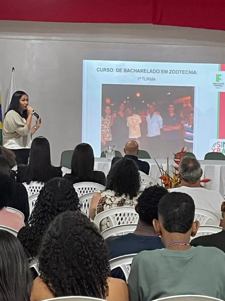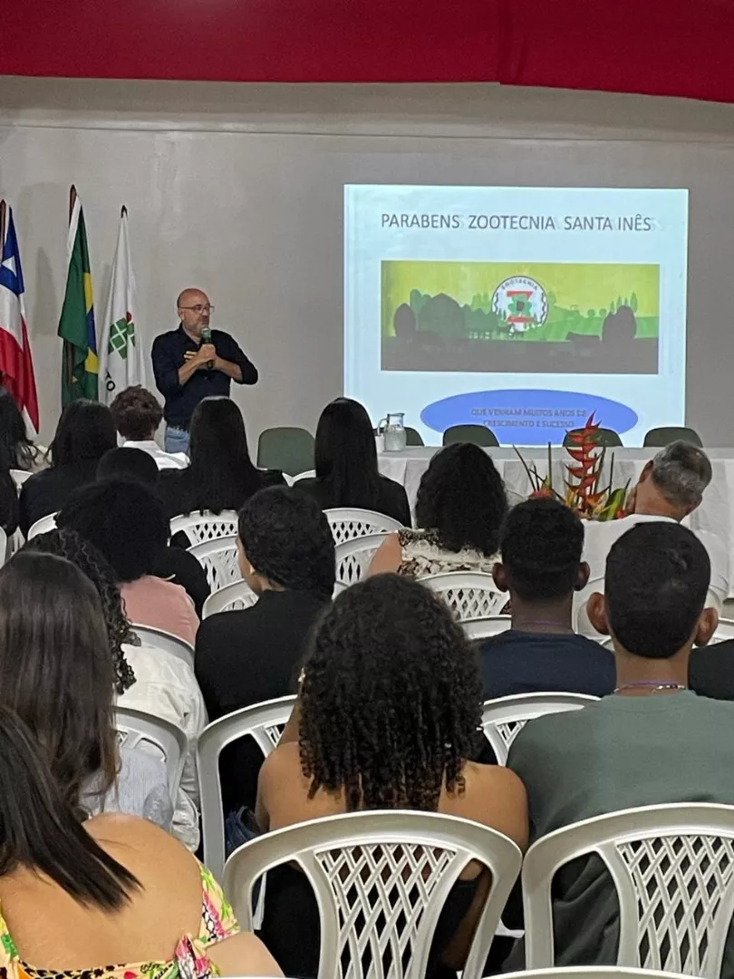 O ponto central de sua celebração foi a comemoração dos 15 anos do curso superior de Bacharelado em Zootecnia do campus. Genilda ressaltou que esses quinze anos foram de “dedicação, aprendizado e crescimento”, formando profissionais comprometidos com a zootecnia, a produção animal, a sustentabilidade e o desenvolvimento do território do Vale do Jiquiriçá e do país. A Diretora enfatizou que o curso se tornou uma referência, não só pela qualidade do ensino, mas também pela significativa contribuição de estudantes e docentes à pesquisa e à extensão rural.