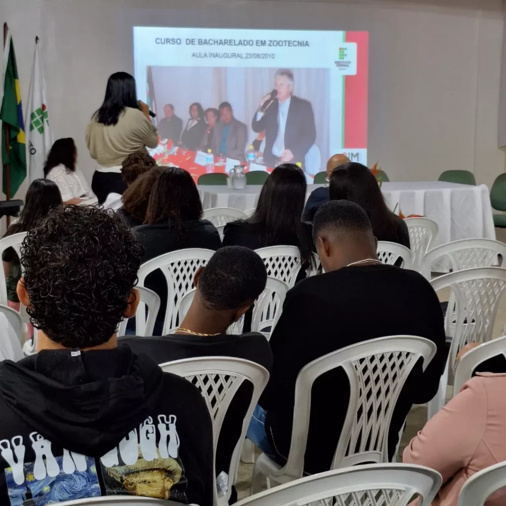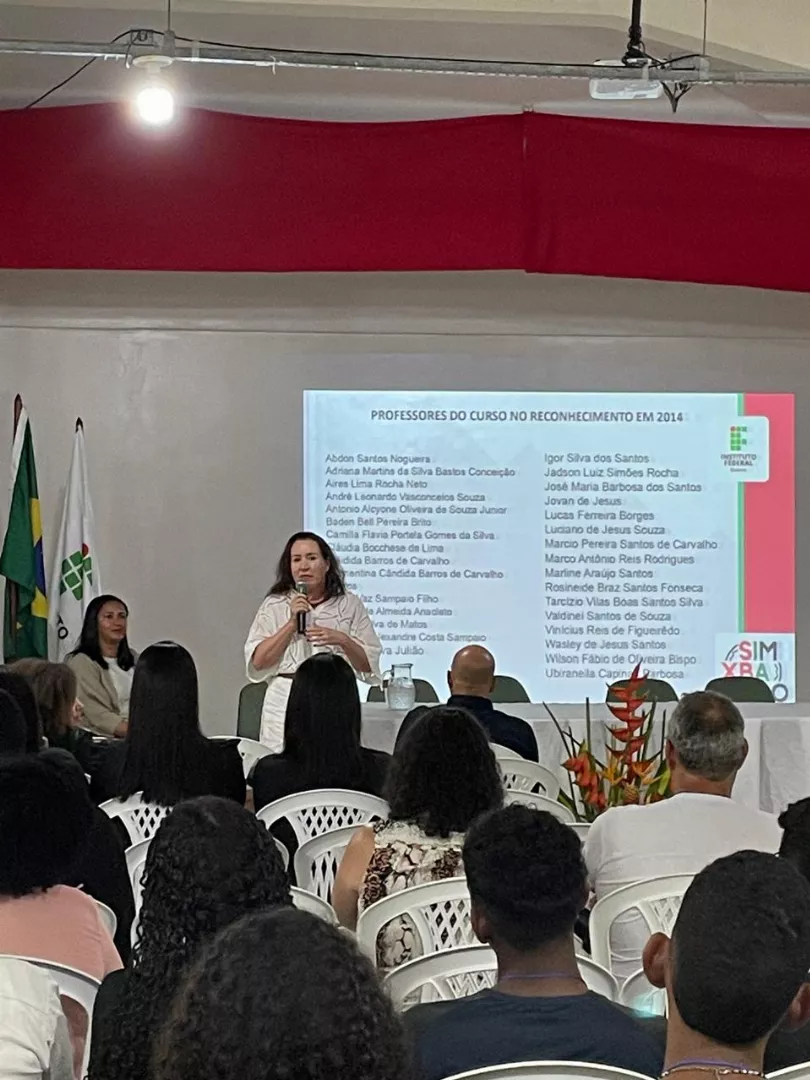 Em seguida, as professoras Clêidida Barros e Daniele Matos emocionaram os presentes ao revisitar a história da Zootecnia no Campus Santa Inês. Em suas falas, trouxeram relatos tocantes de momentos cruciais do curso, desde a coragem inicial dos gestores em implementar o ensino superior na instituição, passando pelos desafios enfrentados e celebrando as memórias construídas ao longo destes 15 anos de dedicação.